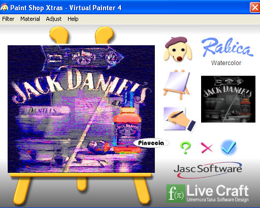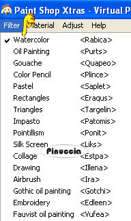 qui puoi trovare qualche risposta ai tuoi dubbi. Se l'argomento che ti interessa non è presente, ti prego di segnalarmelo. Questo tutorial è stato creato con PSP 9, ma può essere eseguito anche con le altre versioni di PSP. Occorrente: Materiale qui Il tube della donna è di Terry gli accessori bar sono di VPC font a scelta. Filtri: Virtual Painter qui nello zip trovi l'immagine sostitutiva nel caso non avessi Virtual Painter 4 Xero XL qui regalo di Natale dei creatori del filtro Xero. Vedi alcuni appunti qui 1. Apri tutto il materiale in PSP e minimizzalo nella tua area di lavoro. Apri una nuova immagine trasparente 750 x 650 pixels. Imposta il colore di primo piano con il nero: #000000, e il colore di sfondo con il bianco: #FFFFFF. 2. Riempi l'immagine trasparente con il colore nero di primo piano.Livelli>Nuovo livello raster. Selezione>Seleziona tutto. Attiva il tube JackDanielsPoolHall_VPC, e vai a Modifica>Copia. Torna al tuo lavoro e vai a Modifica>Incolla>Incolla nella selezione. Selezione>Nessuna selezione. Sposta il tube tutto in basso.Abbassa l'opacità di questo livello al 75%. 3. Attiva JackDanielsArrow_VPC, e vai a Modifica>Copia. Torna al tuo lavoro e vai a Modifica>Incolla>Incolla come nuovo livello. Sposta la freccia in alto, in modo che si trovi sopra la scritta Jack Daniels.Vedi l'esempio sotto. ![]() 4. Livelli>Unisci>Unisci visibile. Regola>Messa a fuoco>Metti a fuoco. Livelli>Duplica. Effetti>Plugins>Virtual Painter 4 - sotto la linguetta Filter seleziona Watercolor: ![]() Sotto la linguetta Material, seleziona Wood. ![]() Imposta tutti i settaggi su Normal, tranne Color, che deve essere impostato su "Intense". ![]() ![]() Se non hai il filtro: NON duplicare il livello. Apri Wannadrink_Virtualpainterlayer (nello zip), e vai a Modifica>Copia. Torna al tuo lavoro e vai a Modifica>Incolla>Incolla come nuovo livello. 5. Cambia la modalità di miscelatura di questo livello in Luminanza (Esistente), o nella modalità che preferisci. Attiva il tube I'll_Take_You_For_A_Ride, e vai a Modifica>Copia. Torna al tuo lavoro e vai a Modifica>Incolla>Incolla come nuovo livello. Immagine>Rifletti. Immagine>Ridimensiona, al 90%, tutti i livelli non selezionato, ricampionamento bicubica. ![]() Sposta questo tube sul lato sinistro della tag.Effetti>Effetti 3D>Sfalsa ombra, con i seguenti settaggi, colore nero: ![]() 6. Attiva il tube Terry_Taking_OverTheMan's_World, e vai a Modifica>Copia. Torna al tuo lavoro e vai a Modifica>Incolla come nuovo livello. Immagine>Rifletti. Immagine>Ridimensiona, al 105%, tutti i livelli non selezionato, bicubica. Effetti>Effetti 3D>Sfalsa ombra, con i settaggi precedenti. Modifica>ripeti Sfalsa ombra. Sposta il tube come mostrato nella schermata sotto.![]() 7. Livelli>Unisci>Unisci visibile. Effetti>Plugins>Xero XL - Porcelain, con i seguenti settaggi: ![]() ![]() assicurati di aver rimosso dai Percorsi la precedente versione, perchè il programma renderà disponibile la prima versione inserita nei percorsi. 8, Livelli>Nuovo livello maschera>Da immagine. Apri il menu sotto la Finestra di origine e dalla lista dei files aperti seleziona la maschera tornedgemask_bp, con i seguenti settaggi. ![]() 9. Livelli>Unisci>Unisci gruppo. Immagine>Ridimensiona, all'85%, tutti i livelli non selezionato, ricampionamento bicubica. Livelli>Nuovo livello raster. Riempi questo livello con il colore bianco di sfondo.ricorda che, per riempire con il colore di sfondo, devi cliccare con il tasto destro del mouse. Livelli>Disponi>Porta sotto. Attiva wannadrink_bkgoverlay, e vai a Modifica>Copia. Torna al tuo lavoro e vai a Modifica>Incolla>Incolla come nuovo livello. Sposta la sfumatura come mostrato nella schermata:![]() non vedrai il tube perchè si trova sotto. Per facilitare lo spostamento, momentaneamente puoi nascondere il livello superiore. 10. Livelli>Duplica. Immagine>Rifletti. Adesso dovresti avere un'altra sfumatura di sfondo sul lato destro della tag (vedi il lavoro finale). . Attiva wannadrink_paper1, e vai a Modifica>Copia. Torna al tuo lavoro e vai a Modifica>Incolla>Incolla come nuovo livello. Immagine>Ridimensiona, al 90%, tutti i livelli non selezionato, ricampionamento bicubica. Sposta la carta come mostrato nell'esempio.![]() 11. Livelli>Duplica. Immagine>Rifletti. Immagine>Capovolgi. Se vuoi, aggiungi degli effetti pennello su questi due livelli "Paper 1". Io ho aggiunto dei pennelli di testo. Aggiungi il tuo nome e/o il tuo watermark. Livelli>Unisci>Unisci visibile, e salva in formato jpg. Usa lo strumento Ritaglio per eliminare lo spazio bianco in eccesso.Livelli>Unisci>Unisci tutto (appiattisci). Ridimensiona, se necessario, e salva in formato jpg. Livelli>Unisci>Unisci tutto (appiattisci). Ritaglia lo spazio bianco in eccesso, ridimensiona se necessario, e salva nel formato che preferisci.![]() Se hai problemi o dubbi, o trovi un link non funzionante, o anche soltanto per un saluto, scrivimi 25 Gennaio 2008 |