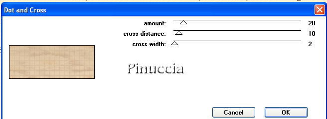 7. Effetti>Plugins>Penta.com - Dot and Cross, con i seguenti settaggi:
