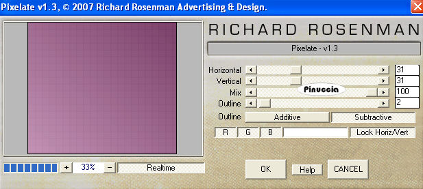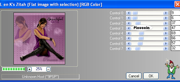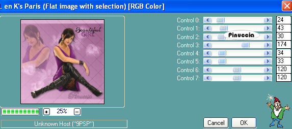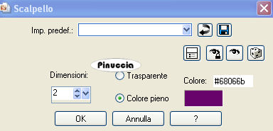 qui puoi trovare qualche risposta ai tuoi dubbi. Se l'argomento che ti interessa non è presente, ti prego di segnalarmelo. Questo tutorial è stato scritto e tradotto con PSP X, ma può essere eseguito anche con le altre versioni di PSP. Il materiale usato per questo tutorial è stato preso da differenti siti, per favore rispetta il lavoro degli autori e non cambiare il nome dei files. Occorrente: Materiale qui Filtri: Richard Rosenman - Pixelate qui L & K's - Zitah qui L & K's - Paris qui FM Tile Tools - Blend Emboss qui 1. Apri una nuova immagine trasparente 650 x 600 pixels. Imposta il colore di primo piano con #c494b6, e il colore di sfondo con #7b416a. Passa il colore di primo piano a Gradiente di primo piano/sfondo, stile lineare: ![]() Riempi l'immagine trasparente con il gradiente.Effetti>Plugins>Richard Rosenman - Pixelate: ![]() 2. Apri il pennello sr_flowers_026 e vai a File>Esporta>Pennello personalizzato. Attiva lo strumento Pennello ![]() cerca e seleziona il pennello che hai appena esportato con i seguenti settaggi: ![]() 3. Livelli>Nuovo livello raster. Passa il colore di primo piano al colore iniziale e applica il pennello con questo colore nell'angolo in alto a destra. Cambia la modalità di miscelatura di questo livello in Filtra e abbassa l'opacità al 70%. Livelli>Duplica. Immagine>Capovolgi. Immagine>Rifletti. Posiziona questo pennello correttamente, vedi il mio esempio.Apri il tube jet-woman27 e vai a Modifica>Copia. non chiuderlo perchè ti servirà ancora Torna al tuo lavoro e vai a Modifica>Incolla come nuovo livello. Immagine>Ridimensiona, all'80%, tutti i livelli non selezionato. Posiziona il tube come nel mio esempio.Effetti>Effetti 3D>Sfalsa ombra, con i seguenti settaggi, colore nero. ![]() Attiva nuovamente il tube della donna. Attiva lo strumento Selezione a mano libera ![]() e seleziona il tube come nell'esempio. ![]() 4. Modifica>Copia. Torna al tuo lavoro e vai a Modifica>Incolla come nuovo livello. Immagine>Rifletti. Abbassa l'opacità di questo livello al 70% (nel mio esempio ho preferito abbassarla al 40%). Nella paletta dei livelli sposta questo livello sotto quello dei pennnelli. Attiva lo strumento Gomma sfondo ![]() ![]() e sfuma il bordo del tube in modo che non si noti il taglio della selezione. 5. Apri WordArt e vai a Modifica>Copia. Torna al tuo lavoro e vai a Modifica>Incolla come nuovo livello. Immagine>Ridimensiona, al 20%, tutti i livelli non selezionato. Sposta il testo in alto a destra.Cambia la modalità di miscelatura di questo livello in Moltiplica. Immagine>Aggiungi bordatura, simmetriche non selezionato, con il colore bianco: ![]() 6. Seleziona il bordo bianco con la bacchetta magica ![]() e riempilo con il colore di primo piano #c494b6.Effetti>Plugins>L&K's - Zitah: ![]() 7. Effetti>Plugins>L&K's - Paris: ![]() 8. Effetti>Effetti 3D>Scalpello, con il colore #68066b. ![]() Selezione>Deseleziona. Livelli>Unisci>Unisci tutto. Aggiungi il tuo nome e/o il tuo watermark e salva in formato jpg. ![]() Se hai problemi o dubbi, o trovi un link non funzionante, o anche soltanto per un saluto, scrivimi. 12 Aprile 2009 |