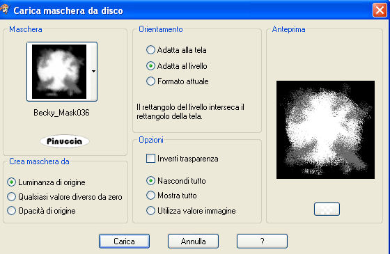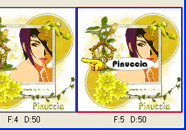 qui puoi trovare qualche risposta ai tuoi dubbi. Se l'argomento che ti interessa non è presente, ti prego di segnalarmelo. Questo tutorial è stato creato e tradotto con PSP X, ma può essere eseguito anche con le altre versioni di PSP. Occorrente: Materiale qui Il materiale usato è un tube di Lori Rhae e lo scrapkit Seachell Scrapz_canaryYellow. Per favore, rispetta il lavoro degli autori, e non alterare il materiale. Filtri: Flaming Pear - Kyoto qui. Ti servirà anche Animation Shop qui 1. Apri una nuova immagine trasparente 600 x 600 pixels. Imposta il colore di primo piano con il bianco, e riempi l'immagine trasparente con questo colore.Apri il tube Seachell_Yellow_paper2, e vai a Modifica>Copia. Torna al tuo lavoro e vai a Modifica>Incolla come nuovo livello. Immagine>Ridimensiona, all'80%, tutti i livelli non selezionato. Livelli>Carica/Salva maschera>Carica maschera da disco. Cerca e carica la maschera Becky_Mask036 ![]() 2. Livelli>Unisci>Unisci gruppo. Apri Seachell_Yellow_paper3, e vai a Modifica>Copia. Torna al tuo lavoro e vai a Modifica>Incolla come nuovo livello. Immagine>Ridimensiona, all'80%, tutti i livelli non selezionato. Regola>Messa a fuoco>Metti a fuoco. Livelli>Carica/Salva maschera>Carica maschera da disco. Cerca e carica la maschera WSL_Mask54: ![]() Livelli>Unisci>Unisci gruppo. Immagine>Ridimensiona, al 70%, tutti i livelli non selezionato. Effetti>Effetti 3D>Sfalsa ombra, con i seguenti settaggi, colore nero. ![]() Sposta la maschera in alto a destra.Livelli>Duplica. Immagine>Capovolgi. Sposta il duplicato come nell'esempio.![]() Apri Seachells_Yellow_elemento22, e vai a Modifica>Copia. Torna al tuo lavoro e vai a Modifica>Incolla come nuovo livello. Immagine>Ridimensiona, al 70%, tutti i livelli non selezionato. Regola>Messa a fuoco>Metti a fuoco. Clicca con la bacchetta magica al centro della cornice per selezionarla.Selezione>Modifica>Espandi - 4 pixels. Apri Seachell_Yellow_paper5, e vai a Modifica>Copia. Torna al tuo lavoro e vai a Modifica>Incolla come nuovo livello. Immagine>Ridimensiona, all'80%, tutti i livelli non selezionato. Selezione>Inverti. Premi sulla tastiera il tasto CANC. Livelli>Disponi>Sposta giù. Selezione>Deseleziona. Apri il tube di Lori Rhae 15Contemplation_LR e vai a Modifica>Copia. Torna al tuo lavoro e vai a Modifica>Incolla come nuovo livello. Immagine>Ridimensiona, al 70%, tutti i livelli non selezionato. Posiziona il tube dietro la cornice (vedi il mio esempio).![]() Regola>Messa a fuoco>Metti a fuoco. 3. Attiva il livello superiore. Apri Seachell_Yellow_Elemento32, e vai a Modifica>Copia. Torna al tuo lavoro e vai a Modifica>Incolla come nuovo livello. Immagine>Ridimensiona, al 30%, tutti i livelli non selezionato. Regola>Messa a fuoco>Metti a fuoco. effetti>Plugins>Flaming Pear - Kyoto. ![]() 4. Sposta la gabbia a sinistra, come nel mio esempio.Apri Seachell_Yellow_Elemento33, e vai a Modifica>Copia. Torna al tuo lavoro e vai a Modifica>Incolla come nuovo livello. Immagine>Ridimensiona, al 40%, tutti i livelli non selezionato. Regola>Messa a fuoco>Metti a fuoco. Immagine>Rifletti. Livelli>Disponi>Sposta giù e posiziona l'uccellino come se fosse dentro la gabbietta.![]() Attiva il livello della cornice. Apri Seachell_Yellow_Elemento2, e vai a Modifica>Copia. Torna al tuo lavoro e vai a Modifica>Incolla come nuovo livello. Immagine>Ridimensiona, al 50%, tutti i livelli non selezionato. Regola>Messa a fuoco>Metti a fuoco. Sposta il ramo tra la gabbia e la cornice.![]() Attiva nuovamente il livello superiore. Apri Seachell_Yellow_Element3 e vai a Modifica>Copia. Torna al tuo lavoro e vai a Modifica>Incolla come nuovo livello. Immagine>Ridimensiona, al 50%, tutti i livelli non selezionato. Regola>Messa a fuoco>Metti a fuoco. Immagine>Capovolgi. Sposta il ramo come nel mio esempio.Attiva lo strumento Gomma e cancella i rametti che non devono vedersi.![]() Apri Seachell_Yellow_Elemento9, e vai a Modifica>Copia. Torna al tuo lavoro e vai a Modifica>Incolla come nuovo livello. Immagine>Ridimensiona, al 30%, tutti i livelli non selezionato. Regola>Messa a fuoco>Metti a fuoco. Immagine>Rifletti. Spostalo sulla cornice in alto a destra.A tutti i livelli degli elementi dello scrap applica l'Effetto Sfalsa ombra usato in precedenza. ![]() Aggiungi il tuo nome e/o il tuo watermark. Attiva il livello del pappagallino Seachell_Yellow_Elemento33. Livelli>Duplica. Premi sulla tastiera il tasto D per attivare lo strumento Deformazione e poter "tirar fuori" dalla gabbia l'uccellino. ![]() Attiva lo strumento Selezione a mano libera , da punto a punto, e seleziona il rametto.Modifica>Copia. Modifica>Incolla come nuovo livello. Spostalo dentro la gabbia, sopra il rametto del primo pappagallino.Attiva lo strumento Gomma e cancella il rametto sotto le zampette del pappagallo duplicato.Dopo aver cancellato il rametto, sposta nuovamente l'uccellino nella gabbia, posizionandolo un po' più in alto.![]() Livelli>Duplica, e sposta il duplicato ancora un po' più in alto.![]() Livelli>Duplica, e sposta ancora l'uccellino un po' più su.![]() Livelli>Duplica, e sposta più su l'uccellino.![]() 6. Chiudi i livelli delle copie del pappagallino. ![]() Modifica>Copia Unione. Apri Animation Shop e vai a Modifica>Incolla>Incolla come nuova animazione. Torna in PSP. Chiudi il livello del pappagallino e apri il livello della prima copia. ![]() in questo momento puoi verificare l'utilità del rametto che hai aggiunto prima; l'uccello esce dalla gabbia, ma il rametto rimane dentro ![]() Modifica>Copia Unione. Torna in Animation Shop e vai a Modifica>Incolla>Incolla dopo il fotogramma corrente. Di nuovo in PSP. Chiudi il livello della prima copia e apri il livello della seconda copia. Modifica>Copia Unione. In Animation Shop: Modifica>Incolla>Incolla dopo il fotogramma corrente. Torna in PSP e ripeti per gli altri due livelli. Alla fine, in Animation Shop avrai una animazione composta da 5 fotogrammi. Modifica>Seleziona tutto. Animazione>Proprietà fotogramma e impo