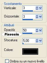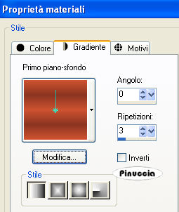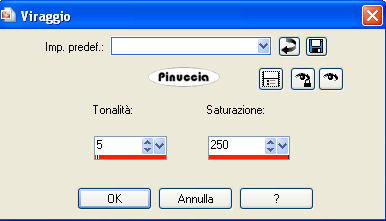 qui puoi trovare qualche risposta ai tuoi dubbi. Se l'argomento che ti interessa non è presente, ti prego di segnalarmelo. Questo tutorial è stato scritto e tradotto con PSP X, ma può essere eseguito anche con le altre versioni di PSP. Un ringraziamento agli artisti che hanno creato il materiale usato in questo tutorial. Occorrente: Materiale qui Filtri: Filter Factory Gallery A qui DSB Flux qui FM Tile Tools qui I filtri Factory Gallery devono prima essere convertiti. Come fare vedi qui 1. Apri una nuova immagine trasparente 600 x 500 pixels. Imposta il colore di primo piano con #ece5231, e il colore di sfondo con #8b3521. Passa il colore di primo piano a Gradiente di primo piano/sfondo, stile lineare, con i seguenti settaggi: ![]() Riempi l'immagine trasparente con il gradiente.Effetti>Effetti di immagine>Motivo unico, con i settaggi standard. Effetti>Effetti di distorsione>Tasselli, con i settaggi standard. Effetti>Plugins>DSB Flux - Center Mirror, con i seguenti settaggi: ![]() 2. Effetti>Plugins>FM Tile Tools - Blend Emboss, con i settaggi standard. ![]() Livelli>Nuovo livello raster. Riempi con il gradiente.Effetti>Plugins>Filter Factory Gallery A - Holidays in Egipt, con i seguenti settaggi. ![]() 3. Abbassa l'opacità di questo livello al 48%. Effetti>Plugins>FM Tile Tools - Blend Emboss. Livelli>Nuovo livello raster. Selezione>Seleziona tutto. Apri il tube krw-theseeyes, e vai a Modifica>Copia. Torna al tuo lavoro e vai a Modifica>Incolla nella selezione. Selezione>Deseleziona. Cambia la modalità di miscelatura di questo livello in Luminanza (esistente), e abbassa l'opacità al 70%. Apri il tube misted_redheaded_lady, e vai a Modifica>copia. Torna al tuo lavoro e vai a Modifica>Incolla come nuovo livello. Immagine>Ridimensiona, all'80%, tutti i livelli non selezionato. Immagine>Rifletti. Sposta il tube come nel mio esempio.Apri il tube deco zwei_herzen, e vai a Modifica>copia. Torna al tuo lavoro e vai a Modifica>Incolla come nuovo livello. Immagine>Ridimensiona, al 70%, tutti i livelli non selezionato. Cambia la modalità di miscelatura di questo livello in Luminanza (esistente), e abbassa l'opacità all'80%. Sposta il tube in alto a destra, vedi il mio esempio.Livelli>Disponi>sposta giù. Apri il tube beauty_man_face, e vai a Modifica>copia. Torna al tuo lavoro e vai a Modifica>Incolla come nuovo livello. Immagine>Ridimensiona, al 70%, tutti i livelli non selezionato. Immagine>Rifletti. Spostalo in alto a sinistra.Cambia la modalità di miscelatura di questo livello in Luminanza (esistente), e abbassa l'opacità al 70%. Effetti>Plugins>FM Tile Tools - Blend Emboss, con i settaggi standard. Livelli>Unisci>Unisci tutto. 4. Immagine>Aggiungi bordatura, 1 pixel, simmetriche, con il colore nero. Livelli>Duplica. Immagine>Ridimensiona, all'80%, tutti i livelli non selezionato. Effetti>Effetti 3D>Sfalsa ombra, con i seguenti settaggi: ![]() Ripeti l'Effetto Sfalsa ombra, ma cambiando verticale e orizzontale con -3. Abbassa l'opacità di questo livello al 75%. Immagine>Aggiungi bordatura, 1 pixel, simmetriche, con il colore nero. Apri il tube "acento" e vai a Modifica>Copia. Torna al tuo lavoro e vai a Modifica>Incolla come nuovo livello. Regola>Saturazione e tonalità>Viraggio, con i seguenti settaggi: ![]() Sposta il tube nell'angolo in alto a destra, vedi il mio esempio.Livelli>duplica. Sposta il duplicato nell'angolo in basso a sinistra, come nel mio esempio.Apri il tube word art_valentines2, e vai a Modifica>Copia. Torna al tuo lavoro e vai a Modifica>Incolla come nuovo livello. Immagine>Ridimensiona, al 70%, tutti i livelli non selezionato. Posizionalo come nel mio esempio.Livelli>Unisci>Unisci tutto. Aggiungi il tuo nome e/o il tuo watermark su un nuovo livello. Per il mio testo ho usato il font fornito con il tutorial. ![]() Se hai problemi o dubbi, o trovi un link non funzionante, o anche soltanto per un saluto, scrivimi. 15 Aprile 2008 |