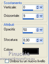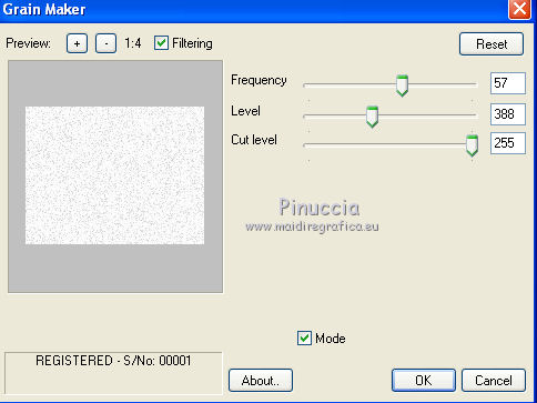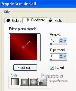 qui puoi trovare qualche risposta ai tuoi dubbi. Se l'argomento che ti interessa non è presente, ti prego di segnalarmelo. Questo tutorial è stato creato e tradotto con PSP X, ma può essere eseguito anche con le altre versioni di PSP. Occorrente: Materiale qui Il materiale usato viene da vari siti della rete, che saranno menzionati nel corso del tutorial. Per favore rispetta il lavoro degli autori e non cambiare il nome dei files. Filtri: Ormente's - Grain Maker qui Ormente's - PowerPlast qui 1. Apri una nuova immagine trasparente 650 x 500 pixels, Imposta il colore di primo piano con #f9f9f9, e riempi l'immagine trasparente con questo colore.Effetti>Plugins>Ormente's Filters - Grain Maker. ![]() 2. Livelli>Nuovo livello raster. Riempi con il colore di primo piano.Immagine>Ridimensiona, all'80%, tutti i livelli non selezionato. Effetti>Plugins>Ormente's Filters - Power Plast. ![]() 3. Effetti>Effetti 3D>Sfalsa ombram, con il colore nero. ![]() Ripeti l'Effetto Sfalsa ombra, cambiando verticale e orizzontale con -2. Selezione>Seleziona tutto. Selezione>mobile. Selezione>Immobilizza. Livelli>Nuovo livello raster. Apri il tube 1811-luzcristina e vai a Modifica>Copia. Torna al tuo lavoro e vai a Modifica>Incolla nella selezione. Selezione>Deseleziona. Cambia la modalità di miscelatura di questo livello in Luminanza (esistente). Apri il tube MMDesignz_okt08_036chr e vai a Modifica>Copia. Torna al tuo lavoro e vai a Modifica>Incolla come nuovo livello. Immagine>Ridimensiona, al 60%, tutti i livelli non selezionato. Regola>Messa a fuoco>Metti a fuoco. Immagine>Rifletti. Sposta il tube a destra, come nel mio esempio.Livelli>Nuovo livello raster. Riempi il livello con il colore di primo piano.Cambia la modalità di miscelatura di questo livello in Luce diffusa. 4. Immagine>Aggiungi bordatura, 25 pixels, simmetriche. Seleziona questo bordo con la baccehtta magica ![]() e riempilo con il colore di primo piano.Effetti>Plugins>Ormente's - PowerPlast, con i settaggi precedenti. Selezione>Deseleziona. Apri il file text-tubeMagic e vai a Modifica>Copia. Torna al tuo lavoro e vai a Modifica>Incolla come nuovo livello. Sposta il testo in alto a sinistra, come nel mio esempio.Effetti>Effetti 3D>sfalsa ombra, con il colore nero. ![]() Aggiungi il tuo nome e/o il tuo watermark su un nuovo livello. Livelli>Unisci>Unisci tutto e salva in formato jpg. ![]() Se hai problemi o dubbi, o trovi un link non funzionante, o anche soltanto per un saluto, scrivimi. 9 Gennaio 2010 |