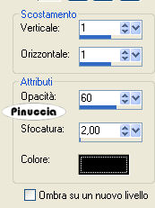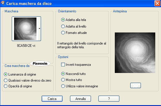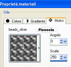 qui puoi trovare qualche risposta ai tuoi dubbi. Se l'argomento che ti interessa non è presente, ti prego di segnalarmelo. Questo tutorial è stato creato e tradotto con PSP X, ma può essere eseguito anche con le altre versioni di PSP. Occorrente: Materiale qui Il tube utilizzato è ©Cherie Roberts. Lo scrapkit è di SS-Shabby Chic. Il materiale utilizzato viene da diversi siti della rete. Rispetta il lavoro degli autori, non cambiare il nome dei files e non cancellare il livello del watermark. Filtri: Filters Unlimited qui 1. Apri una nuova immagine trasparente 700 x 700 pixels. Selezione>Seleziona tutto. Apri SS-Shabby Chi-Paper 2 e vai a Modifica>Copia. Torna al tuo lavoro e vai a Modifica>Incolla nella selezione. Selezione>Deseleziona. Livelli>Nuovo livello raster. Imposta il colore di primo piano con #cf98b5, e riempi il livello con questo colore.Livelli>Carica/Salva maschera>Carica maschera da disco. Cerca e carica la maschera 8CA58X2E-vi: ![]() Livelli>Unisci>Unisci gruppo. Apri SS-Shabby-Chic-Frame2, e vai a Modifica>Copia. Torna al tuo lavoro e vai a Modifica>Incolla come nuovo livello. Sposta la cornice un po' più in alto.Attiva lo strumento Bacchetta magica ![]() e clicca al centro delle cornici per selezionarla. Selezione>Modifica>Espandi - 3 pixels. Apri SS-Shabby Chic-Paper 8. Immagine>Ruota per gradi - 90 gradi a destra. Immagine>Ridimensiona, al 70%. Modifica>Copia. Torna al tuo lavoro e vai a Modifica>Incolla come nuovo livello. Posiziona la carta in modo che si veda il merletto.![]() Selezione>Inverti. Premi sulla tastiera il tasto CANC. Regola>Messa a fuoco>Metti a fuoco. Livelli>disponi>Sposta giù. Selezione>Deseleziona. Apri il tube di Cherie Roberts montilrgwarmersrevisite, e vai a Modifica>Copia. Torna al tuo lavoro e vai a Modifica>Incolla come nuovo livello. Immagine>Ridimensiona, al 55%, tutti i livelli non selezionato. Immagine>Rifletti. Posiziona il tube nell'area della cornice.Attiva il livello delle cornici e seleziona nuovamente le cornici con la bacchetta magica ![]() ![]() Selezione>Modifica>Espandi - 3 pixels. Selezione>Inverti. Attiva il livello del tube e premi sulla tastiera il tasto CANC. Selezione>Deseleziona. Cambia la modalità di miscelatura di questo livello in Luminanza (esistente). 2. Attiva il livello superiore. Apri SS-Shabby Chic-Beaded Flower, e vai a Modifica>Copia. Torna al tuo lavoro e vai a Modifica>Incolla come nuovo livello. Immagine>ridimensiona, al 50%, tutti i livelli non selezionato. Regola>Messa a fuoco>Metti a fuoco. Posiziona il fiore in alto a sinistra, come nel mio esempio.Effetti>Effetti 3D>Sfalsa ombra, con i seguenti settaggi, colore nero. ![]() Apri SS-Shabby Chic-Charm e vai a Modifica>Copia. Torna al tuo lavoro e vai a Modifica>Incolla come nuovo livello. Immagine>ridimensiona, al 50%, tutti i livelli non selezionato. Posiziona il tube in alto a destra, come nel mio esempio.Regola>Messa a fuoco>Metti a fuoco. Effetti>Effetti 3D>Sfalsa ombra, con i settaggi precedenti. Apri SS-Shabby Chic-Beads, e vai a Modifica>Copia. Torna al tuo lavoro e vai a Modifica>Incolla come nuovo livello. Immagine>ridimensiona, al 60%, tutti i livelli non selezionato. Regola>Messa a fuoco>Metti a fuoco. Posiziona le perle sotto la cornice.![]() Effetti>Effetti 3D>Sfalsa ombra, con i settaggi precedenti. Apri SS-Shabby Chic-Glitter Doodle 2, e vai a Modifica>Copia. Torna al tuo lavoro e vai a Modifica>Incolla come nuovo livello. Immagine>Ridimensiona, al 55%, tutti i livelli non selezionato. Immagine>Ruota per gradi - 40 gradi a sinistra. ![]() Posiziona la decorazione pressappoco come nel mio esempio.![]() Livelli>Duplica. Immagine>Capovolgi. Posiziona il duplicato un po' più a sinistra.![]() Abbassa l'opacità di questi due livelli al 75% e sposta i livelli sopra il livello della maschera. Attiva il livello superiore. Attiva nuovamente il tube Cherie Roberts montilegwarmersrevisite, e vai a Modifica>Copia. Torna al tuo lavoro e vai a Modifica>Incolla come nuovo livello. Immagine>ridimensiona, all'85%, tutti i livelli non selezionato. Sposta il tube in basso, come nel mio esempio.![]() Effetti>Plugins>Filters Unlimited 2.0 - Color Effects - Colorize(HSB): ![]() 3. Apri il motivo beads-silver e minimizzalo. Passa il colore di primo piano a Motivi, e troverai il motivo nella lista dei motivi disponibili. Seleziona il motivo con i seguenti settaggi: ![]() Selezione>Seleziona tutto. Selezione>Modifica>Contrai - 4 pixels. Selezione>Inverti. Livelli>Nuovo livello raster. Riempi con il motivo argento.Selezione>Deseleziona. Chiudi tutti i livelli tranne i primi quattro e il livello superiore del bordino. ![]() Modifica>Copia Unione. Modifica>Incolla come nuova immagine. Immagine>Capovolgi. Torna al tuo lavoro. Livelli>Visualizza>Tutto. Modifica>Copia Unione. Torna all'immagine precedente e vai a Modifica>Incolla come nuovo livello. Immagine>Ridimensiona, all'80%, tutti i livelli non selezionato. Sposta l'immagine un po' più in alto.![]() Effetti>Effetti 3D>Sfalsa ombra, con i seguenti settaggi, colore nero. ![]() Apri il wordart Anita e vai a Modifica>Copia. Torna al tuo lavoro e vai a Modifica>Incolla come nuovo livello. Immagine>Ridimensiona, all'80%, tutti i livelli non selezionato. Sposta il testo in alto.Effetti>Effetti 3D>sfalsa ombra, con i settaggi precedenti. Aggiungi il tuo nome e/o il tuo watermark su un nuovo livello, senza dimenticare il copyright del tube usato. Livelli>Unisci>Unisci tutto e salva in formato jpg. ![]() Se hai problemi o dubbi, o trovi un link non funzionante, o anche soltanto per un saluto, scrivimi. 12 Settembre 2009 |