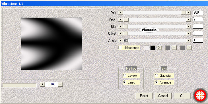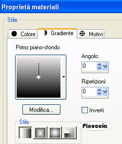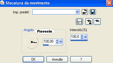 qui puoi trovare qualche risposta ai tuoi dubbi. Se l'argomento che ti interessa non è presente, ti prego di segnalarmelo. Questo tutorial è stato creato con PSP X2, ma può essere eseguito anche con le altre versioni di PSP. Per tradurlo, ho usato PSP X. Occorrente: Materiale qui Filtri: FM Tile Tools - Blend Emboss qui Mehdi - Vibrations 1.1 qui Funhouse - Patchwork qui 1. Apri una nuova immagine trasparente 640 x 550 pixels. Imposta il colore di primo piano con il nero #000000, e il colore di sfondo con #f1edee. Passa il colore di primo piano a Gradiente di primo piano/sfondo, con i seguenti settaggi: ![]() Riempi l'immagine trasparente con il gradiente.Effetti>Plugins>Mehdi>Vibrations: prima di impostare i settaggi seleziona Lines e Average: ![]() poi imposta i settaggi: ![]() 2. Apri il tube 1521-luzcristina, e vai a Modifica>Copia. non chiuderlo perchè ti servirà ancora Torna al tuo lavoro e vai a Modifica>Incolla come nuovo livello. Cambia la modalità di miscelatura di questo livello in luminanza (esistente). Effetti>Effetti di immagine>Motivo unico, con i settaggi standard. ![]() 3. Regola>Sfocatura>Sfocatura da movimento: ![]() Effetti>Plugins>Funhouse - Pachwork: ![]() 4. Effetti>Plugins>FM Tile Tools - Blend Emboss, con i settaggi standard. ![]() Livelli>Duplica. Immagine>Ruota per gradi - 45 gradi a destra. ![]() Livelli>Nuovo livello raster. Selezione>Seleziona tutto. Attiva nuovamente il tube 1521-luzcristina e vai a Modifica>Copia. Torna al tuo lavoro e vai a Modifica>Incolla nella selezione. Selezione>Deseleziona. Cambia la modalità di miscelatura di questo livello in luminanza (esistente). Apri il tube @nn_080407_models, e vai a Modifica>Copia. Torna al tuo lavoro e vai a Modifica>Incolla come nuovo livello. Immagine>Ridimensiona, al 50%, tutti i livelli non selezionato. Regola>Messa a fuoco>Metti a fuoco. Spostalo come nel mio esempio.Effetti>Effetti 3D>sfalsa ombra, con i seguenti settaggi, colore nero. ![]() Apri il file di testo e via a Modifica>Copia. Torna al tuo lavoro e vai a Modifica>Incolla come nuovo livello. Sposta il testo in alto al centro.5. Immagine>Aggiungi bordatura, 2 pixels, con il colore di sfondo #f1eddd. Immagine>Aggiungi bordatura, 40 pixels, simmetriche, con il colore #363634. Apri il tube dell'angolo "crnsmsilvercnr04" e vai a Modifica>Copia. Torna al tuo lavoro e via a Modifica>Incolla come nuovo livello. Spostalo nell'angolo in alto a sinistra.Livelli>Duplica. Immagine>Rifletti. Livelli>Duplica. Immagine>Capovolgi. Livelli>duplica. Immagine>Rifletti. Livelli>Unisci>Unisci tutto. Aggiungi il tuo nome e/o il tuo watermark e salva in formato jpg. ![]() Se hai problemi o dubbi, o trovi un link non funzionante, o anche soltanto per un saluto, scrivimi. 16 Maggio 2009 |