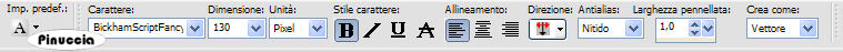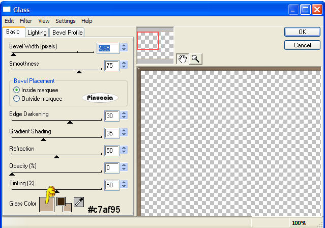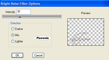 qui puoi trovare qualche risposta ai tuoi dubbi. Se l'argomento che ti interessa non è presente, ti prego di segnalarmelo. Occorrente: Materiale qui Il tube è di Gini. Filtri: Visman Extravaganza - Transmission qui FM Tile Tools - Blend Emboss qui EYe Candy 4000 - Glass qui Dsb Flux - Bright Noise qui 1. Apri una nuova immagine trasparente 600 x 450 pixels. 2. Riempi l'immagine trasparente con il colore #c7af95.3. Apri il tube Whatsheisthinking_TubedByGini_09-27-05 e vai a Modifica>Copia. 4. Torna al tuo lavoro e vai a Modifica>Incolla>Incolla come nuovo livello. 5. Immagine>Ridimensiona, all'80%, tutti i livelli non selezionato. Sposta il tube a destra.6. Cambia la modalità di miscelatura di questo livello in Luminanza (esistente). 7. Effetti>Effetti 3D>Sfalsa ombra, con i seguenti settaggi, colore nero. ![]() 8. Liveli>Nuovo livello raster. 9. Riempi il nuovo livello con il colore #c7af95.10. Effetti>Plugins>VM Extravaganza - Transmission: ![]() 11. Effetti>Plugins>FM Tile Tools - Blend Emboss, con i settaggi standard. ![]() 12. Abbassa l'opacità di questo livello al 30%. 13. Attiva lo strumento Gomma ![]() e cancella le strisce dall'immagine. 14. Livelli>Unisci>Unisci visibile. 15. Selezione>Seleziona tutto. 16. Selezione>Modifica>Contrai, di 8 pixels. 17. Selezione>Inverti. 18. Livelli>Nuovo livello raster. Riempi con #3a2209.19. Effetti>Plugins>Eye Candy 4000 - Glass, con i seguenti settaggi. ![]() 20. Effetti>Effetti 3D>Sfalsa ombra, con i seguenti settaggi, colore nero: ![]() 21. Selezione>Nessuna selezione (Ctrl D). 22. Apri l'immagine ~DMSlickme.psp e vai a Modifica>Copia. 23. Torna al tuo lavoro e vai a Modifica>Incolla>Incolla come nuovo livello. 24. Immagine>Ridimensiona, all'80%, tutti i livelli non selezionato. Cambia la modalità di miscelatura di questo livello in Luminanza (esistente). 25. Attiva lo strumento Bacchetta magica ![]() e clicca all'esterno della piccola immagine. 26. Selezione>inverti. 27. Selezione>Modifica>Seleziona bordature selezione: ![]() 28. Mantieni selezionato. Liveli>Nuovo livello raster. Riempi con #3a2209.29. Effetti>Plugins>Eye Candy 4000 - Glass, con i settaggi precedenti. 30. Effetti>Effetti 3D>Sfalsa ombra, con i seguenti settaggi, colore nero. ![]() 31. Selezione>Nessuna selezione (Ctrl D). 32. Apri il tube hdj-antique_clocksmall.psd, e vai a Modifica>Copia. 33. Torna al tuo lavoro e vai a Modifica>Incolla>Incolla come nuovo livello. 34. Immagine>Rifletti. 35. Immagine>Ridimensiona, all'80%, tutti i livelli non selezionato. Cambia la modalità di miscelatura di questo livello in Luminanza (Esistente). Sposta il tube nell'angolo in alto a sinistra.Nella paletta dei livelli trascina questo livello in modo che rimanga tra il livello della cornice e quello della coppia. ![]() 36. Attiva il livello superiore. Attiva lo strumento Testo ,seleziona il font BickhamScriptFancy, dimensione 100, pennellata 1, B come Bold, colore di primo piano nero (#000000) e colore di sfondo #ecd4bb. ![]() questi sono i settaggi per PSP X. Se stai usando PSP 9, dovrai regolare la dimensione, perchè i pixels di PSP X non corrispondono a quelli della versione 9. Su questa differenza, vedi alcuni appunti in fondo a questa pagina 37. Scrivi "Time", e posiziona il testo. Livelli>converti in livello raster. 38. Seleziona il font Univox, dimensione 12, pennellata 0 e Bold. Cambia il colore di sfondo con il nero. Scrivi "Is a healer". Sposta il testo in basso e usa la griglia per allungarlo in altezza. Livelli>Converti in livello raster. 39. Livelli>Nuovo livello raster, e aggiungi il tuo watermark. 40. Chiudi il livello "Time", attiva uno degli altri livelli e vai a Livelli>Unisci>Unisci visibile. Assicurati che il livello del testo sia il livello superiore. Se non è così: Livelli>Disponi>Sposta in alto. 41. Livelli>Duplica, 2 volte. Chiudi i due duplicati cliccando sull'occhio nella paletta dei livelli e attiva il livello originale. ![]() 42. Effetti>Plugins>Dsb Flux - Bright noise: ![]() Chiudi questo livello. 43. Apri e attiva la prima copia del livello Time. 44. Effetti>Plugins>Dsb Flux - Bright noise, intensity 35, direction mix. Chiudi questo livello. 45. Apri e attiva la seconda copia del livello Time. 46. Effetti>Plugins>Dsb Flux - Bright Noise, intensity 40, direction mix. 47. Chiudi nuovamente i livelli dei due duplicati. 48. Attiva il livello originale. Posizionati sul livello Uniti e vai a Modifica>Copia Unione. ![]() 49. Apri Animation Shop. Clicca con il tasto destro del mouse sullo spazio vuoto e Incolla come nuova animazione. ![]() ottieni lo stesso risultato con Ctrl V. 50. Torna in PSP. 50. Chiudi il livello originale e apri la prima copia. Assicurati che sia sempre attivo il livello di sfondo. 51. Modifica>Copia unione. 52. In Animation Shop: Modifica>Incolla>Incolla dopo il fotogramma corrente. 53. In PSP. Chiudi la prima copia e apri la seconda copia. 54. Modifica>Copia Unione. In Animation Shop ancora: Modifica>Incolla>Incolla dopo il fotogramma corrente. 55. File>Salva come - scegli un nome e una cartella e clicca next fino alla fine. ![]() Se hai problemi o dubbi, o trovi un link non funzionante, o anche soltanto per dirmi se questo tutorial ti è piaciuto, scrivimi. 2 Giugno 2007 |