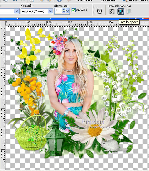 qui puoi trovare qualche risposta ai tuoi dubbi. Se l'argomento che ti interessa non è presente, ti prego di segnalarmelo. Questo tutorial è stato creato con PSP9 e tradotto con CorelX, ma può essere realizzato anche con le altre versioni di PSP. Dalla versione X4, il comando Immagine>Rifletti è stato sostituito con Immagine>Capovolgi in orizzontale, e il comando Immagine>Capovolgi con Immagine>Capovolgi in verticale. Nelle versioni X5 e X6, le funzioni sono state migliorate rendendo disponibile il menu Oggetti. Con la nuova versione X7 sono tornati i comandi Rifletti e Capovolgi, ma con nuove differenze. Vedi la scheda sull'argomento qui Occorrente: Materiale qui Lo scrapkit è di Angie. Il tube usato è di Krys ![]() Se stai usando altri colori, non esitare a sperimentare le modalità di miscelatura e le opacità dei livelli più adatte. 1. Apri una nuova immagine trasparente 700 x 700 pixels. 2. Apri "achtergrond" e vai a Modifica>Copia. Torna al tuo lavoro e vai a Modifica>Incolla come nuovo livello. Lascialo come sta. 3. Apri 0_d095f_63b7296b_L (la cornice) e vai a Modifica>Copia. Torna al tuo lavoro e vai a Modifica>Incolla come nuovo livello. Effetti>Effetti 3D>Sfalsa ombra. ![]() 4. Apri 0_d0958_92ea9543_L (la cornice pizzo) e vai a Modifica>Copia. Torna al tuo lavoro e vai a Modifica>Incolla come nuovo livello. Effetti>Effetti 3D>Sfalsa ombra, con i settaggi precedenti. 5. Apri 0_d08fd_e393d103_L (angolo di foglie) e vai a Modifica>Copia. Torna al tuo lavoro e vai a Modifica>Incolla come nuovo livello. Spostalo in alto a sinistra della cornice.Effetti>Effetti 3D>Sfalsa ombra, con i settaggi precedenti. 6. Apri 0_d094e_3f31378_L (farfalle) e vai a Modifica>Copia. Torna al tuo lavoro e vai a Modifica>Incolla come nuovo livello. Spostalo in alto a sinistra.Effetti>Effetti 3D>Sfalsa ombra, con i settaggi precedenti. 7. Apri 0_d0952_51673f3f_L (ramo di foglie) e vai a Modifica>Copia. Torna al tuo lavoro e vai a Modifica>Incolla come nuovo livello. Spostalo sotto la cornice.![]() Effetti>Effetti 3D>Sfalsa ombra, con i settaggi precedenti. 8. Apri 0_d0961_37cd5647_L (foglioline) e vai a Modifica>Copia. Torna al tuo lavoro e vai a Modifica>Incolla come nuovo livello. Spostalo in basso a destra della cornice.Effetti>Effetti 3D>Sfalsa ombra, con i settaggi precedenti. 9. Apri 0_d0912_4d8f54f3_L (ramo di foglie chiaro) e vai a Modifica>Copia. Torna al tuo lavoro e vai a Modifica>Incolla come nuovo livello. Spostalo a destra della cornice.Effetti>Effetti 3D>Sfalsa ombra, con i settaggi precedenti. 10. Apri 0_d0938_8d5d4cf8_L (ramo di campanule) e vai a Modifica>Copia. Torna al tuo lavoro e vai a Modifica>Incolla come nuovo livello. Spostalo a destra della cornice.![]() Effetti>Effetti 3D>Sfalsa ombra, con i settaggi precedenti. 11. Apri 0_d08fc_1c743bcf_L (margherita) e vai a Modifica>Copia. Torna al tuo lavoro e vai a Modifica>Incolla come nuovo livello. Spostalo sotto la cornice.![]() Effetti>Effetti 3D>Sfalsa ombra, con i settaggi precedenti. 12. Apri 0_d0917_8ec972bd_L (fiori gialli) e vai a Modifica>Copia. Torna al tuo lavoro e vai a Modifica>Incolla come nuovo livello. Spostalo a sinistra della cornice.Effetti>Effetti 3D>Sfalsa ombra, con i settaggi precedenti. 13. Apri 0_d0954_d8854433_L (cestino) e vai a Modifica>Copia. Torna al tuo lavoro e vai a Modifica>Incolla come nuovo livello. Spostalo in basso a sinistra.Effetti>Effetti 3D>Sfalsa ombra, con i settaggi precedenti. 14. Apri 0_d095c_36c7d323_L (lanterna) e vai a Modifica>Copia. Torna al tuo lavoro e vai a Modifica>Incolla come nuovo livello. Spostalo in bassi a sinistra.![]() Effetti>Effetti 3D>Sfalsa ombra, con i settaggi precedenti. 15. Apri 0_d093f_a5209ed0_L (topolino) e vai a Modifica>Copia. Torna al tuo lavoro e vai a Modifica>Incolla come nuovo livello. Spostalo in basso a destra.![]() Effetti>Effetti 3D>Sfalsa ombra, con i settaggi precedenti. 16. Attiva il livello di sfondo. Apri il tube della donna e vai a Modifica>Copia. Torna al tuo lavoro e vai a Modifica>Incolla come nuovo livello. Cancella la parte del tube sotto la cornice. ![]() 17. Livelli>Duplica. Livelli>Disponi>Porta in alto. Cancella eventuali tracce del tube rimaste sotto la cornice.18. Firma il tuo lavoro. Immagine>Ridimensiona, 500 x 500 pixels, o come preferisci, tutti i livelli selezionato. 19. Se vuoi che il lavoro abbia lo sfondo bianco: Livelli>Unisci>Unisci tutto e salva in formato jpg. 20. Se vuoi mantenere lo sfondo trasparente: Livelli>Unisci>Unisci visibile. Per eliminare lo spazio in eccesso, attiva lo strumento Selezione ![]() e clicca sull'icona Livello opaco. ![]() Immagine>Ritaglia la selezione. Salva in formato png: File>Esporta>Ottimizzazione PNG ![]() ![]() ![]() ![]() Puoi scrivermi per qualsiasi motivo - problemi, dubbi, un link non funzionante - o anche soltanto per un saluto 5 Agosto 2017 |