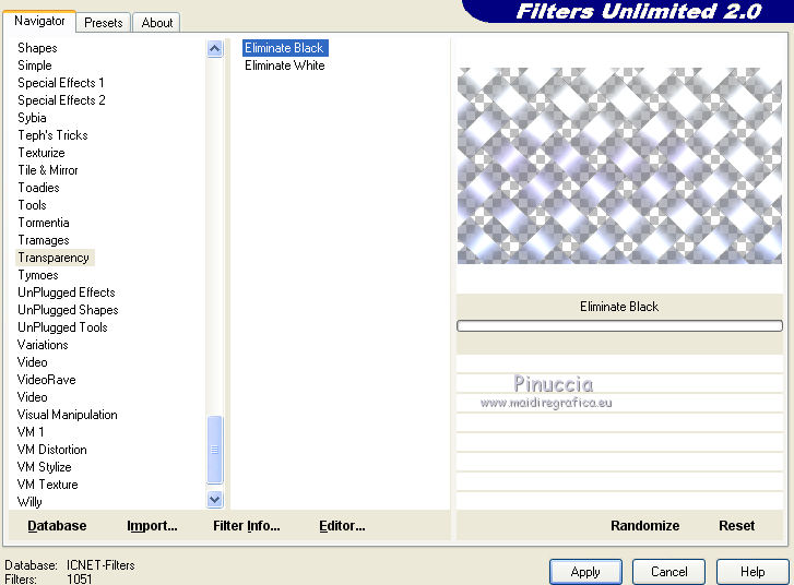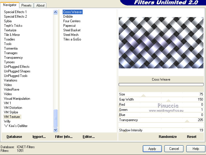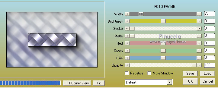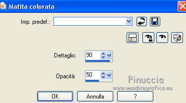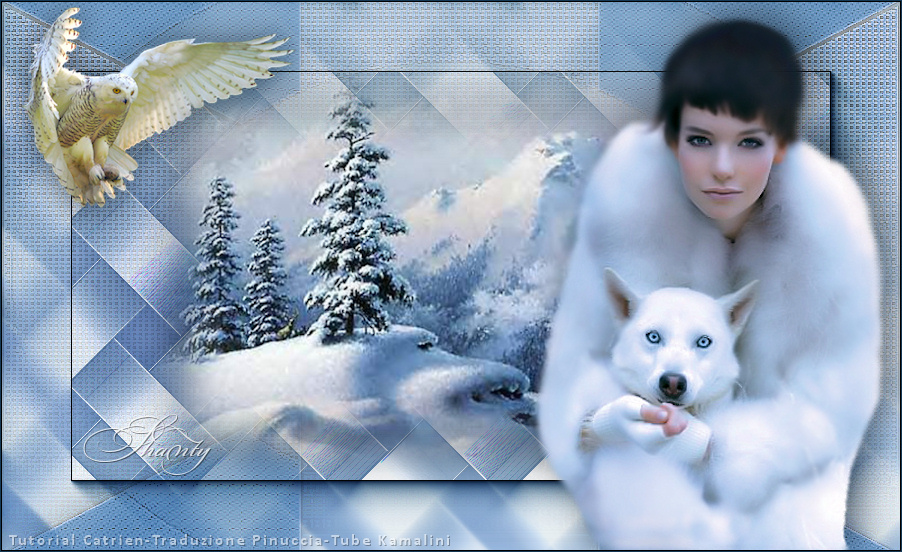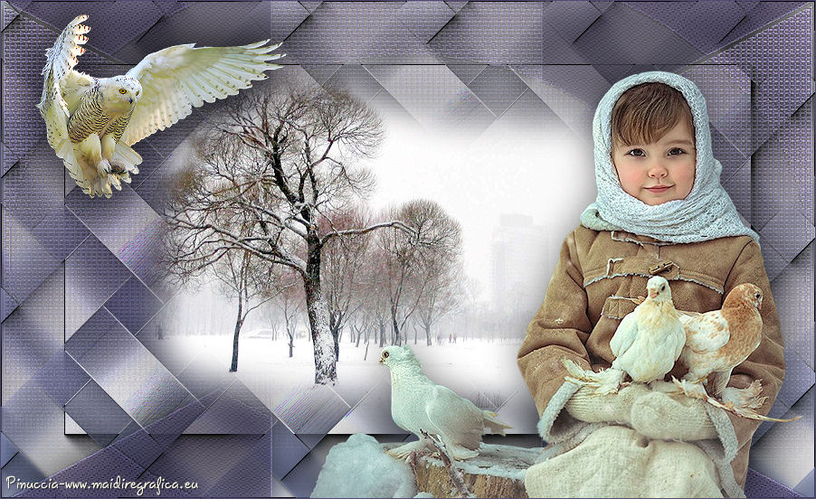 qui puoi trovare qualche risposta ai tuoi dubbi. Se l'argomento che ti interessa non è presente, ti prego di segnalarmelo. Questo tutorial è stato creato con PSP 9 e tradotto con CorelX, ma può essere realizzato anche con le altre versioni di PSP. Dalla versione X4, il comando Immagine>Rifletti è stato sostituito con Immagine>Capovolgi in orizzontale, e il comando Immagine>Capovolgi con Immagine>Capovolgi in verticale. Nelle versioni X5 e X6, le funzioni sono state migliorate rendendo disponibile il menu Oggetti. Con la nuova versione X7 sono tornati i comandi Rifletti e Capovolgi, ma con nuove differenze. Vedi la scheda sull'argomento qui Occorrente: Materiale qui Grazie: per i tube grazie Linda e Kamil, e per la maschera Narah. Filtri: se hai problemi con i filtri, consulta la mia sezione filtri qui Filters Unlimited 2.0 qui Transparency - Eliminate Black qui AAA Frames - Foto Frame qui VM Texture - Cross Weave qui I filtri Transparency e VM Texture si possono usare da soli o importati in Filters Unlimited (come fare vedi qui) Se un filtro fornito appare con questa icona A volte si possono ottenere risultati differenti. ![]() Se stai usando altri colori, non esitare a sperimentare le modalità di miscelatura e le opacità dei livelli più adatte. Apri la maschera in PSP e minimizzala con il resto del materiale. 1. Imposta il colore di primo piano con #554a72. ![]() 2. Apri una nuova immagine trasparente 900 x 550 pixels. Selezione>Seleziona tutto. 3. Apri l'immagine 133960.jpg, e vai a Modifica>Copia. Torna al tuo lavoro e vai a Modifica>Incolla nella selezione. Selezione>Deseleziona. 4. Regola>Sfocatura>Sfocatura gaussiana - raggio 40. ![]() 5. Livelli>Duplica. Effetti>Plugins>Filters Unlimited 2.0 - VM Texture - Cross Weave. ![]() Effetti>Effetti di bordo>Aumenta di più. 6. Effetti>Plugins>Filters Unlimited 2.0 - Transparency - Eliminate Black. ![]() 7. Effetti>Effetti tecniche di disegno>Matita colorata. ![]() 8. Effetti>Effetti 3D>Sfalsa ombra. ![]() Modifica>Ripeti Sfalsa ombra. 9. Livelli>Unisci>Unisci visibile. 10. Effetti>Plugins>AAA Frames - Foto Frame. ![]() 11. Livelli>Nuovo livello raster. Riempi con il colore di primo piano #554a72.12. Livelli>Nuovo livello maschera>Da immagine. Apri il menu sotto la finestra di origine e vedrai la lista dei files aperti. Seleziona la maschera Narah_mask_0158, con i seguenti settaggi. ![]() Livelli>Unisci>Unisci gruppo. Effetti>Effetti di bordo>Aumenta di più. 13. Effetti>Effetti 3D>Sfalsa ombra, con i settaggi precedenti. ![]() Cambia la modalità di miscelatura di questo livello in Scurisci. 14. Apri Kamil-186, e vai a Modifica>Copia. Torna al tuo lavoro e vai a Modifica>Incolla come nuovo livello. Regola>Messa a fuoco>Metti a fuoco. Effetti>Effetti 3D>Sfalsa ombra, con i settaggi precedenti. ![]() 15. Apri LF-WinterGirl-27102015, e vai a Modifica>Copia. Torna al tuo lavoro e vai a Modifica>Incolla come nuovo livello. Spostalo in basso a destra.Regola>Messa a fuoco>Metti a fuoco. 16. Effetti>Effetti 3D>Sfalsa ombra, con i settaggi precedenti. ![]() 17. Apri tubed by-LFWC-owl2, e vai a Modifica>Copia. Torna al tuo lavoro e vai a Modifica>Incolla come nuovo livello. Immagine>Ridimensiona, 3 volte al 75%, tutti i livelli non selezionato. Immagine>Rifletti. Sposta il tube nell'angolo in alto a sinistra.Regola>Messa a fuoco>Metti a fuoco. Effetti>Effetti 3D>Sfalsa ombra, con i settaggi precedenti. ![]() Modifica>Ripeti Sfalsa ombra. 18. Firma il tuo lavoro. Livelli>Unisci>Unisci tutto. 19. Immagine>Aggiungi bordatura, 1 pixel, simmetriche, colore di primo piano #554a72. Salva in formato jpg. ![]() Le vostre versioni. Grazie ![]() Mina ![]() Clo ![]() Diana ![]() Shanty ![]() Olimpia ![]() Gabry ![]() Giovanni ![]() Puoi scrivermi per qualsiasi motivo - problemi, dubbi, un link non funzionante - o anche soltanto per un saluto 21 Novembre 2015 |