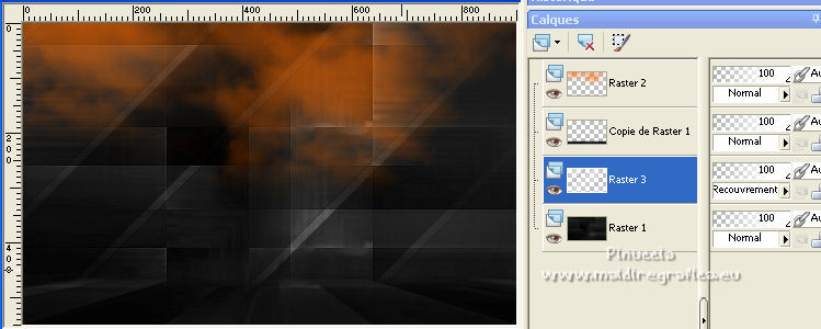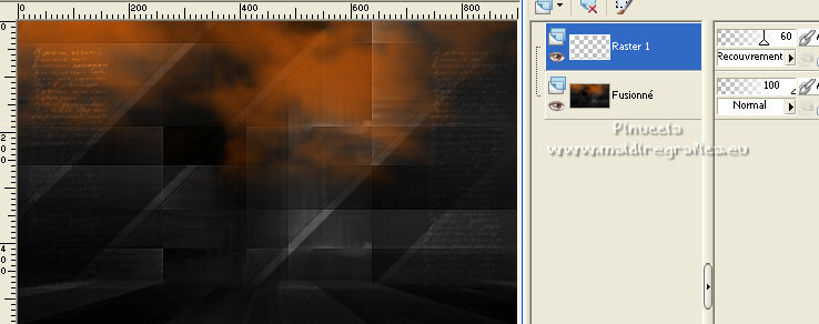Placer le calque en mode Recouvrement et réduire l'opacité à 60%.