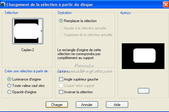 4. Sélections>Charger/Enregistrer une sélection>Charger à partir du disque.