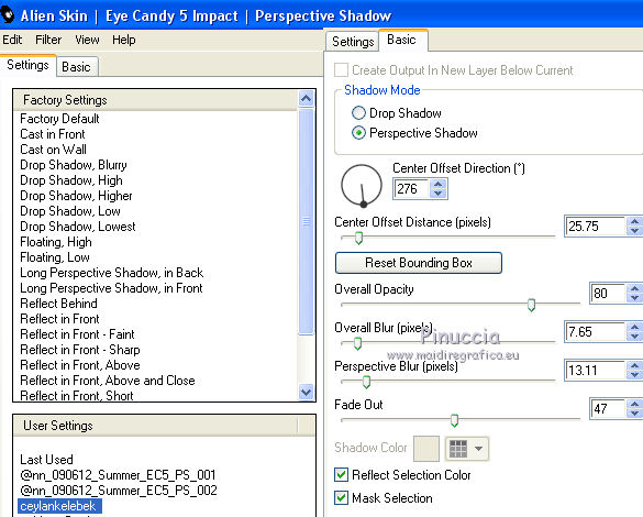 Effets>Modules Externes>Alien Skin Eye Candy 5 Impact - Perspective Shadow.