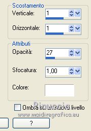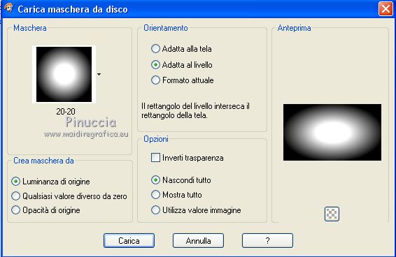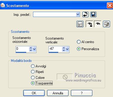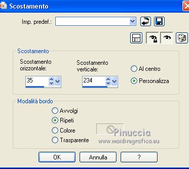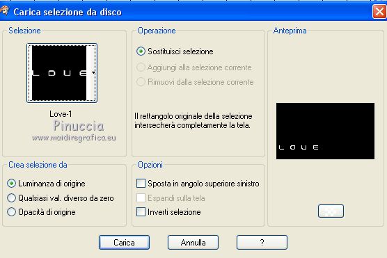 qui puoi trovare qualche risposta ai tuoi dubbi. Se l'argomento che ti interessa non è presente, ti prego di segnalarmelo. Questo tutorial è stato scritto con CorelX6 e tradotto con CorelX e CorelX2, ma può essere realizzato anche con le altre versioni di PSP. Dalla versione X4, il comando Immagine>Rifletti è stato sostituito con Immagine>Capovolgi in orizzontale, e il comando Immagine>Capovolgi con Immagine>Capovolgi in verticale. Nelle versioni X5 e X6, le funzioni sono state migliorate rendendo disponibile il menu Oggetti. Con la nuova versione X7, sono tornati Rifletti>Capovolgi, ma con nuove varianti. Vedi la scheda sull'argomento qui traduzione in francese/traduction en français qui/ici Versioni/Versions quiOccorrente: Materiale qui Per i tubes grazie Tocha e Mary. (in questa pagina trovi i links ai siti dei creatori di tubes) Filtri: se hai problemi con i filtri, consulta la mia sezione filtri qui Filters Unlimited 2.0 qui <&; BKG Designer sf10II> - NEO Vasarely Mosaics (da importare in Unlimited) qui Alien Skin Eye Candy 5 Impact - Perspective Shadow qui AAA Frames - Foto Frame qui Facoltativo: Animation Shop qui ![]() non esitare a cambiare modalità di miscelatura e opacità secondo i colori utilizzati. Metti il preset Cliccando sul file una o due volte (a seconda delle tue impostazioni), automaticamente il preset si installerà nella cartella corretta. perchè uno o due clic vedi qui Metti i pennelli nella cartella Pennelli. Attenzione, ogni pennello è composto da due files che non devono essere separati. Vedi gli appunti sui pennelli qui Metti la maschera nella cartella Maschere. Metti la selezione nella cartella Selezioni. Imposta il colore di primo piano con il colore #00000, e il colore di sfondo con il colore bianco #ffffff. ![]() 1. Apri una nuova immagine trasparente 950 x 550 pixels. ![]() 2. Selezione>Seleziona tutto. Apri l'immagine "CEYLAN" e vai a Modifica>Copia. Torna al tuo lavoro e vai a Modifica>Incolla nella selezione. Selezione>Deseleziona. 3. Effetti>Plugins>AAA Frames - Foto Frame. ![]() 4. Livelli>Duplica. Effetti>Plugins>Filters Unlimited 2.0 - <&; BKG Designer sf10II> - NEO Vasarely Mosaics, con i settaggi standard. ![]() Regola>Messa a fuoco>Metti a fuoco. 5. Livelli>Carica/Salva maschera>Carica maschera da disco. Cerca e carica la maschera 20-20. ![]() Livelli>Duplica. ![]() Livelli>Unisci>Unisci gruppo. 6. Apri il tube Mary 0912-47 e vai a Modifica>Copia. Torna al tuo lavoro e vai a Modifica>Incolla come nuovo livello. 7. Regola>Tonalità e saturazione>Viraggio. ![]() 8. Apri LoveCeylan-Deco-1 e vai a Modifica>Copia. Torna al tuo lavoro e vai a Modifica>Incolla come nuovo livello. 9. Effetti>Effetti di distorsione>Coordinate polari. ![]() 10. Immagine>Ridimensiona, al 50%, tutti i livelli non selezionato. 11. Effetti>Effetti 3D>Sfalsa ombra, colore nero. ![]() 12. Apri Love Teks-1 e vai a Modifica>Copia. Torna al tuo lavoro e vai a Modifica>Incolla come nuovo livello. 13. Effetti>Effetti di immagine>Scostamento. ![]() 14. Livelli>Duplica. Immagine>Rifletti. Livelli>Unisci>Unisci giù. 15. Livelli>Nuovo livello raster. Attiva lo strumento Pennello ![]() Cerca e seleziona il pennello Love Teks-1. ![]() Applica il pennello in alto a sinistra, cliccando con il tasto sinistro del mouse, per usare il colore nero di primo piano. ![]() 16. Effetti>Effetti 3D>Sfalsa ombra, colore #ffffff. ![]() 17. Livelli>Nuovo livello raster. Selezione>Carica/Salva selezione>Carica selezione da disco. Cerca e carica la selezione Love-1. ![]() Riempi la selezione con il colore bianco di sfondo #ffffff.Selezione>Deseleziona. 18. Effetti>Plugins>Alien Skin Eye Candy 5 Impact Perspective Shadow. Seleziona il preset ceylan e ok. ![]() 19. Effetti>Effetti 3D>Sfalsa ombra, colore nero. ![]() 20. Apri Love-Ceylan-Deco2 e vai a Modifica>Copia. Torna al tuo lavoro e vai a Modifica>Incolla come nuovo livello. Effetti>Effetti di immagine>Scostamento. ![]() 21. Apri LoveCeylan-Deco3 e vai a Modifica>Copia. Torna al tuo lavoro e vai a Modifica>Incolla come nuovo livello. Effetti>Effetti di immagine>Scostamento. ![]() 22. Apri LoveCeylan-Deco4 e vai a Modifica>Copia. Torna al tuo lavoro e vai a Modifica>Incolla come nuovo livello. Effetti>Effetti di immagine>Scostamento. ![]() 23. Apri il tube Tocha23199 Apri LoveCeylan-Deco3 e vai a Modifica>Copia. Torna al tuo lavoro e vai a Modifica>Incolla come nuovo livello. Effetti>Effetti di immagine>Scostamento. ![]() Regola>Messa a fuoco>Metti a fuoco. 24. Immagine>Aggiungi bordatura, 1 pixel, simmetriche, colore #000000. Immagine>Aggiungi bordatura, 7 pixels, simmetriche, colore #ffffff. Immagine>Aggiungi bordatura, 1 pixel, simmetriche, colore #000000. Immagine>Aggiungi bordatura, 50 pixels, simmetriche, colore #ffffff. Immagine>Aggiungi bordatura, 1 pixel, simmetriche, colore #000000. 25. Apri Love Today e vai a Modifica>Copia. Torna al tuo lavoro e vai a Modifica>Incolla come nuovo livello. Spostalo in basso a sinistra.26. Apri LoveCeylan-Deco5 e vai a Modifica>Copia. Torna al tuo lavoro e vai a Modifica>Incolla come nuovo livello. 27. Firma il tuo lavoro su un nuovo livello. Livelli>Unisci>Unisci tutto. Se non vuoi realizzare l'animazione, salva in formato jpg. ![]() Se vuoi realizzare l'animazione: Facoltativo: Immagine>Ridimensiona, 950 pixels di larghezza, tutti i livelli selezionato. 1. Modifica>Copia. Apri Animation Shop e vai a Modifica>Incolla>Incolla come nuova animazione. 2. Modifica>Duplica e ripeti finché non avrai una animazione composta da 16 fotogrammi. Clicca sul primo fotogramma per selezionarlo e vai a Modifica>Seleziona tutto. 3. Apri la gif SimoneAni253, anche questa composta da 16 fotogrammi. Modifica>Seleziona tutto. Modifica>Copia. Attiva il tuo lavoro e vai a Modifica>Incolla>Incolla nel fotogramma selezionato. Posiziona la gif in basso a sinistra ![]() 4. Controlla il risultato cliccando su Visualizza ![]() e salva in formato gif. Versione con tube di Luz Cristina (il misted è mio) ![]() ![]() Puoi scrivermi se