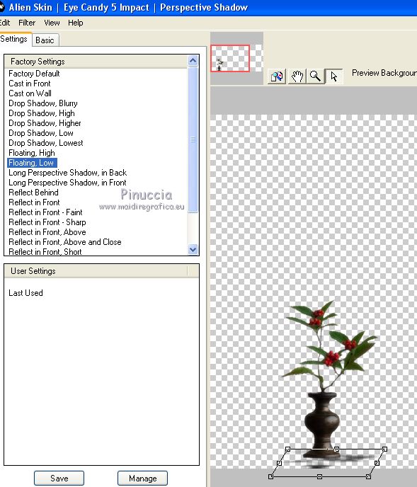 34. Effets>Modules Externes>Alien Skin Eye Candy 5 Impact - Perspective Shadow.