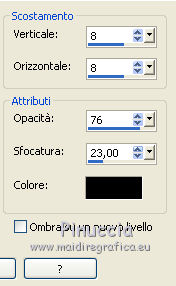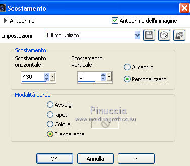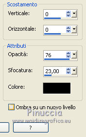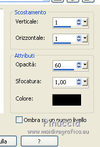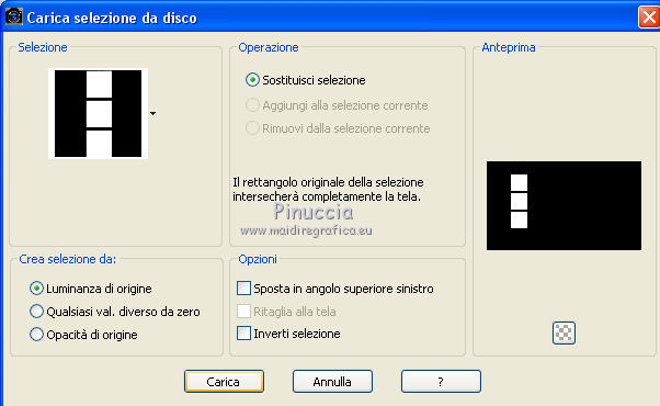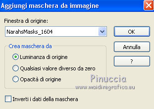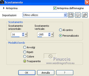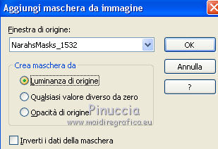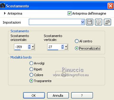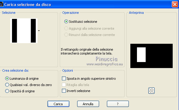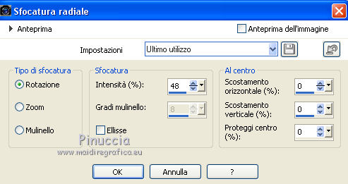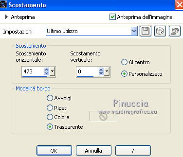 qui puoi trovare qualche risposta ai tuoi dubbi. Se l'argomento che ti interessa non è presente, ti prego di segnalarmelo. Questo tutorial è stato scritto con CorelX6 e tradotto con CorelX e CorelX2, ma può essere realizzato anche con le altre versioni di PSP. Dalla versione X4, il comando Immagine>Rifletti è stato sostituito con Immagine>Capovolgi in orizzontale, e il comando Immagine>Capovolgi con Immagine>Capovolgi in verticale. Nelle versioni X5 e X6, le funzioni sono state migliorate rendendo disponibile il menu Oggetti. Con la nuova versione X7, sono tornati Rifletti>Capovolgi, ma con nuove varianti. Vedi la scheda sull'argomento qui traduzione in francese/traduction en français qui/ici Versioni/Versions quiOccorrente: Materiale qui Grazie per il tube Maryse e per le maschere Narah e @nn-tdstudio. (in questa pagina trovi i links ai siti dei creatori di tubes) Filtri: se hai problemi con i filtri, consulta la mia sezione filtri qui Filters Unlimited 2.0 qui AAA Filters - Custom qui Graphics Plus - Cross Shadow qui Flaming Pear - Flood qui &<Bkg Designer sf10IV> - Lighburst (à importer dans Unlimited) qui It@lian Editors Effect - Effetto Fantasma qui FM Tile Tools - Blend Emboss qui I filtri Graphics Plus e Italian Editors si possono usare da soli o importati in Filters Unlimited (come fare vedi qui) Se un filtro fornito appare con questa icona ![]() non esitare a cambiare modalità di miscelatura e opacità secondo i colori utilizzati. Metti le selezioni nella cartella Selezioni. Apri le maschere in PSP e minimizzale con il resto del materiale. 1. Imposta il colore di primo piano con #202020, e il colore di sfondo con #ffffff. ![]() 2. Apri una nuova immagine trasparente 950 x 550 pixels. ![]() 3. Selezione>Seleziona tutto. Apri l'immagine di sfondo "ceylan" e vai a Modifica>Copia. Torna al tuo lavoro e vai a Modifica>Incolla nella selezione. Selezione>Deseleziona. 4. Regola>Sfocatura>Sfocatura radiale. ![]() 5. Effetti>Plugins>Flaming Pear - Flood ![]() Regola>Messa a fuoco>Metti a fuoco. 6. Livelli>Duplica. Effetti>Plugins>Filters Unlimited 2.0 - &<Bkg Designers sf10IV> - Lightburst, con i settaggi standard. ![]() 7. Effetti>Plugins>Graphics Plus - Cross Shadow, con i settaggi standard. ![]() 8. Effetti>Plugins>FM Tile Tools - Blend Emboss, con i settaggi standard. ![]() 9. Livelli>Nuovo livello raster. Riempi con il colore #ffffff.Livelli>Nuovo livello maschera>Da immagine. Apri il menu sotto la finestra di origine e vedrai la lista dei files aperti. Seleziona la maschera NarahsMasks_1532. ![]() Livelli>Duplica. Livelli>Unisci>Unisci giù. Cambia la modalità di miscelatura di questo livello in Indebolisci. 10. Livelli>Nuovo livello raster. Riempi con il colore #ffffff.Livelli>Nuovo livello maschera>Da immagine. Apri il menu sotto la finestra d'origine e seleziona la maschera NarahsMasks_1604. ![]() Livelli>Unisci>Unisci gruppo. Cambia la modalità di miscelatura di questo livello in Luce diffusa. ![]() 11. Livelli>Nuovo livello raster. Selezione>Carica/Salva selezione>Carica selezione da disco. Cerca e carica la selezione C1. ![]() Riempi la selezione con il colore #ffffff.Abbassa l'opacità di questo livello al 40%. Selezione>Deseleziona. 12. Effetti>Plugins>Italian Editors Effect - Effetto Fantasma. ![]() Effetti>Effetti di bordo>Aumenta. 13. Effetti>Effetti 3D>Sfalsa ombra, colore nero. ![]() Regola>Messa a fuoco>Metti a fuoco. 14. Effetti>Effetti di immagine>Scostamento. ![]() 15. Apri Flowers e vai a Modifica>Copia. Torna al tuo lavoro e vai a Modifica>Incolla come nuovo livello. Effetti>Effetti di immagine>Scostamento. ![]() Livelli>Disponi>Sposta giù. 16. Attiva il livello superiore. Livelli>Nuovo livello raster. Selezione>Carica/Salva selezione>Carica selezione da disco. Cerca e carica la selezione C2. ![]() Riempi la selezione con il colore #ffffff.Selezione>Modifica>Contrai - 1 pixel. Premi sulla tastiera il tasto CANC ![]() Selezione>Deseleziona. 17. Effetti>Effetti 3D>Sfalsa ombra, colore nero. ![]() 18. Effetti>Effetti 3D>Sfalsa ombra, colore nero. ![]() 19. Apri Deco ceylan e vai a Modifica>Copia. Torna al tuo lavoro e vai a Modifica>Incolla come nuovo livello. Effetti>Effetti di immagine>Scostamento. ![]() 20. Livelli>Nuovo livello raster. Selezione>Carica/Salva selezione>Carica selezione da disco. Cerca e carica la selezione C3. ![]() Riempi la selezione con il colore #ffffff.Selezione>Deseleziona. 21. Livelli>Duplica. Regola>Sfocatura>Sfocatura radiale. ![]() Livelli>Disponi>Sposta giù. Attiva il livello superiore. Effetti>Effetti 3D>Sfalsa ombra, colore nero. ![]() 22. Apri il tube MR_Alexandra, cancella il watermark e vai a Modifica>Copia. Torna al tuo lavoro e vai a Modifica>Incolla come nuovo livello. Immagine>Ridimensiona, al 90%, tutti i livelli non selezionato. Posiziona correttamente il tube.Effetti>Effetti 3D>Sfalsa ombra, colore nero. ![]() 23. Apri text-farewell e vai a Modifica>Copia. Torna al tuo lavoro e vai a Modifica>Incolla come nuovo livello. Effetti>Effetti di immagine>Scostamento. ![]() 24. Apri Texs-veda e vai a Modifica>Copia. Torna al tuo lavoro e vai a Modifica>Incolla come nuovo livello. Effetti>Effetti di immagine>Scostamento. ![]() 25. Immagine>Aggiungi bordatura, 1 pixel, simmetriche, colore di primo piano #202020. Immagine>Aggiungi bordatura, 50 pixels, simmetriche, colore di sfondo #ffffff. Immagine>Aggiungi bordatura, 9 pixels, simmetriche, colore di primo piano #202020. 26. Effetti>Plugins>AAA Filters - Custom, clicca su Landscape e ok. ![]() 27. Immagine>Ridimensiona, 950 pixels di larghezza, tutti i livelli selezionato. 28. Apri farewell-2 e vai a Modifica>Copia. Torna al tuo lavoro e vai a Modifica>Incolla come nuovo livello. Effetti>Effetti di immagine>Scostamento. ![]() 29. Firma il tuo lavoro e salva in formato jpg. Versione con tubes di Luz Cristina e Silvie ![]() ![]() Puoi scrivermi se hai problemi o dubbi, o trovi un link che non funziona, o soltanto per un saluto. 12 Novembre 2020 |