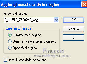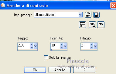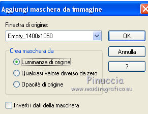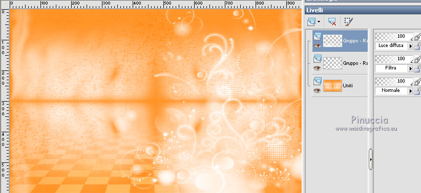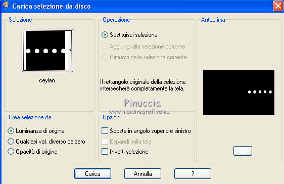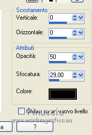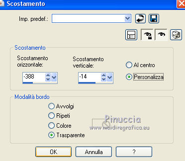 qui puoi trovare qualche risposta ai tuoi dubbi. Se l'argomento che ti interessa non è presente, ti prego di segnalarmelo. Questo tutorial è stato scritto con CorelX9 e tradotto con Corel X7 e CorelX2, ma può essere realizzato anche con le altre versioni di PSP. Dalla versione X4, il comando Immagine>Rifletti è stato sostituito con Immagine>Capovolgi in orizzontale, e il comando Immagine>Capovolgi con Immagine>Capovolgi in verticale. Nelle versioni X5 e X6, le funzioni sono state migliorate rendendo disponibile il menu Oggetti. Con la nuova versione X7, sono tornati Rifletti>Capovolgi, ma con nuove varianti. Vedi la scheda sull'argomento qui traduzione in francese/traduction en français qui/ici Versioni/Versions quiOccorrente: Materiale qui Per il tube grazie Coly. (in questa pagina trovi i links ai siti dei creatori di tubes) Filtri: se hai problemi con i filtri, consulta la mia sezione filtri qui Filters Unlimited 2.0 qui &<Bkg Designer sf10IV> - Instant Tile (da importare in Unlimited) qui Alien Skin Eye Candy 5 Impact qui Alien Skin Eye Candy 5 Nature - Smoke qui Toadies - Ommadawn qui I filtri Toadies si possono usare da soli o importati in Filters Unlimited (come fare vedi qui) Se un filtro fornito appare con questa icona ![]() non esitare a cambiare modalità di miscelatura e opacità secondo i colori utilizzati. Metti i preset Cliccando sul file una o due volte (a seconda delle tue impostazioni), automaticamente il preset si installerà nella cartella corretta. perchè uno o due clic vedi qui Metti le selezioni nella cartella Selezioni. Apri le maschere in PSP e minimizzale con il resto del materiale. Imposta il colore di primo piano con #ff8000, e il colore di sfondo con #ffffff. ![]() 1. Apri una nuova immagine trasparente 950 x 600 pixels, e riempila con il colore di primo piano #ff8000.2. Effetti>Plugins>Alien Skin Eye Candy 5 Nature - Smoke. Seleziona il preset ceylan e ok. ![]() 3. Effetti>Plugins>Filters Unlimited 2.0 - &<Bkg Designer sf10IV> - Instant Tile, con i settaggi standard. ![]() Regola>Messa a fuoco>Metti a fuoco. 4. Apri DecoCeylan-1 e vai a Modifica>Copia. Torna al tuo lavoro e vai a Modifica>Incolla come nuovo livello. Cambia la modalità di miscelatura di questo livello in Luminanza. ![]() 5. Livelli>Unisci>Unisci visibile. 6. Livelli>Nuovo livello raster. Riempi con il colore di sfondo #ffffff.Livelli>Nuovo livello maschera>Da immagine. Apri il menu sotto la finestra di origine e vedrai la lista dei files aperti. Seleziona la maschera 0_11ff13_758ff2e7_orig ![]() Livelli>Unisci>Unisci gruppo. Cambia la modalità di miscelatura di questo livello in Filtra. ![]() 7. Livelli>Nuovo livello raster. Riempi con il colore di sfondo #ffffff.Livelli>Nuovo livello maschera>Da immagine. Apri il menu sotto la finestra di origine e seleziona la maschera Empty_1400x1050 ![]() Livelli>Unisci>Unisci gruppo. Cambia la modalità di miscelatura di questo livello in Luce diffusa. ![]() 8. Livelli>Nuovo livello raster. Selezione>Carica/Salva selezione>Carica selezione da disco. Cerca e carica la selezione Arrow. ![]() Riempi la selezione con il colore di sfondo #ffffff.Selezione>Deseleziona. 9. Effetti>Effetti 3D>Sfalsa ombra, colore #000000. ![]() 10. Livelli>Nuovo livello raster. Selezione>Carica/Salva selezione>Carica selezione da disco. Cerca e carica la selezione ceylan. ![]() Imposta lo strumento Riempimento modalità Valore RGB ![]() e riempi ogni selezione con un colore differente, a tua scelta.![]() 11. Effetti>Plugins>Alien Skin Eye Candy 5 Impact - Glass. Seleziona il preset CEYLANN e ok. ![]() Selezione>Deseleziona. 12. Effetti>Plugins>Alien Skin Eye Candy 5 Impact - Perspective Shadow. Seleziona il preset ceylanshow e ok. ![]() 13. Livelli>Nuovo livello raster. Selezione>Carica/Salva selezione>Carica selezione da disco. Cerca e carica la selezione ceylan1. ![]() Strumento Riempimento con i settaggi precedenti, e riempi ogni quadretto con un colore differente![]() 14. Effetti>Plugins>Alien Skin Eye Candy 5 Impact - Glass - preset CEYLANN. Selezione>Deseleziona. 15. Livelli>Duplica. Livelli>Disponi>Sposta giù. 16. Regola>Sfocatura>Sfocatura gaussiana - raggio 30. ![]() 17. Effetti>Plugins>Toadies - Ommadawn. ![]() 18. Attiva il livello superiore. Apri il tube DecoCeylan-2 e vai a Modifica>Copia. Torna al tuo lavoro e vai a Modifica>Incolla come nuovo livello. Effetti>Effetti di immagine>Scostamento. ![]() 19. Livelli>Nuovo livello raster. Selezione>Carica/Salva selezione>Carica selezione da disco. Cerca e carica la selezione Text Vera. ![]() Imposta il colore di primo piano con un colore a tua scelta. Imposta la modalità di miscelatura dello strumento Riempimento su Nessuno Riempi e riempi la selezione con il colore di primo piano. Selezione>Deseleziona. 20. Effetti>Plugins>Alien Skin Eye Candy 5 Impact - Perspective Shadow. Seleziona il preset Reflect in front, Sharp e ok. ![]() 21. Effetti>Effetti 3D>Sfalsa ombra, colore #000000. ![]() 22. Apri il tube Text-MENDES e vai a Modifica>Copia. Torna al tuo lavoro e vai a Modifica>Incolla come nuovo livello. Effetti>Effetti di immagine>Scostamento. ![]() 23. Apri il tube femme673-coly e vai a Modifica>Copia. Torna al tuo lavoro e vai a Modifica>Incolla come nuovo livello. Immagine>Ridimensiona, al 70%, tutti i livelli non selezionato. Effetti>Effetti 3D>Sfalsa ombra. ![]() 24. Immagine>Aggiungi bordatura, 1 pixel, simmetriche, colore #000000. Immagine>Aggiungi bordatura, 3 pixels, simmetriche, colore #ffffff. Immagine>Aggiungi bordatura, 1 pixel, simmetriche, colore #000000. Immagine>Aggiungi bordatura, 10 pixels, simmetriche, colore #ffffff. Immagine>Aggiungi bordatura, 1 pixel, simmetriche, colore #000000. Immagine>Aggiungi bordatura, 45 pixels, simmetriche, colore #ffffff. Immagine>Aggiungi bordatura, 1 pixel, simmetriche, colore #000000. Immagine>Aggiungi bordatura, 2 pixels, simmetriche, colore #ffffff. Immagine>Aggiungi bordatura, 1 pixel, simmetriche, colore #000000. 25. Immagine>Ridimensiona 950 pixels di lar