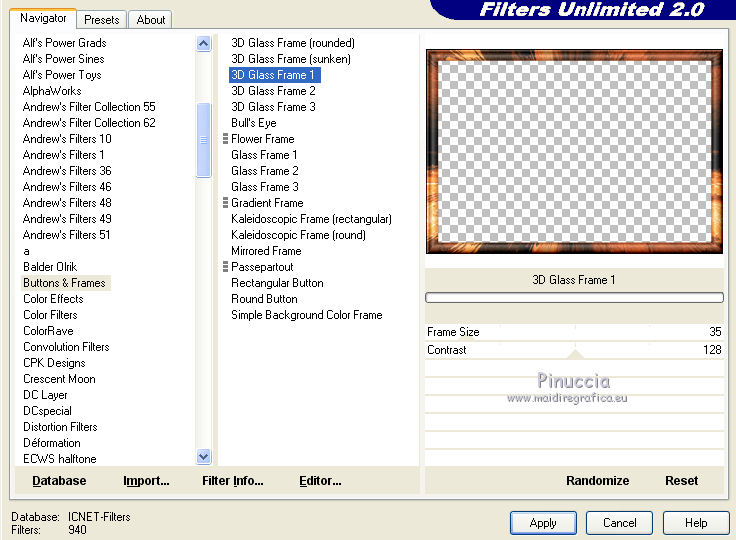 16. Effets>Modules Externes>Filters Unlimited 2.0 - Buttons &Frames - 3D Glass Frame.