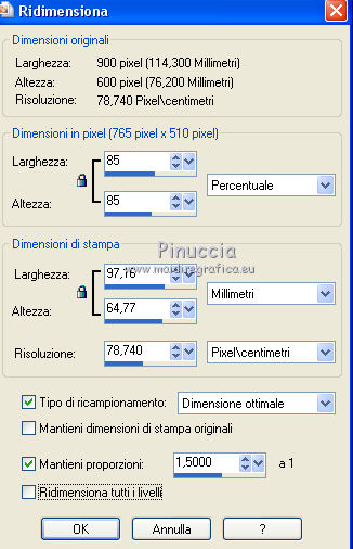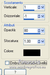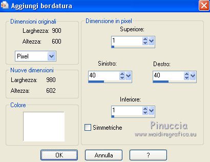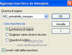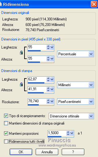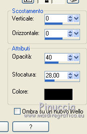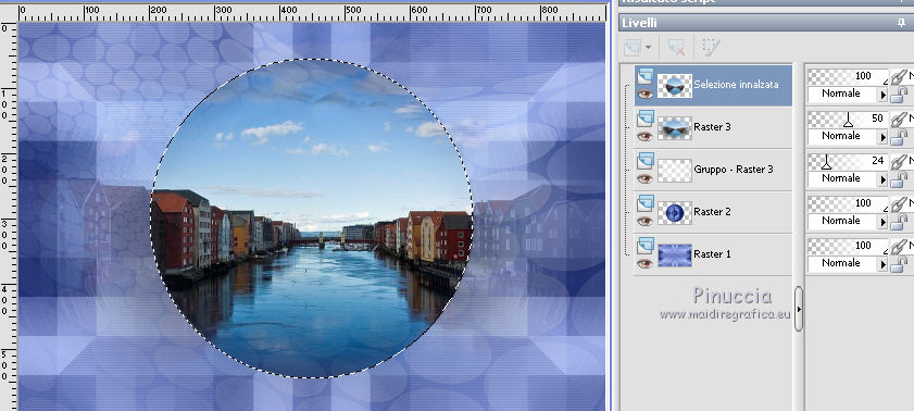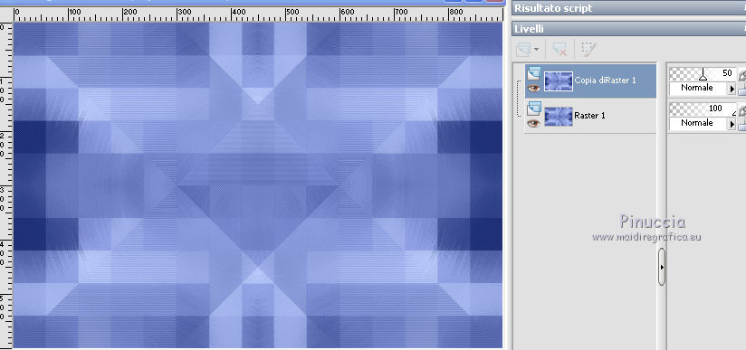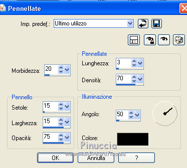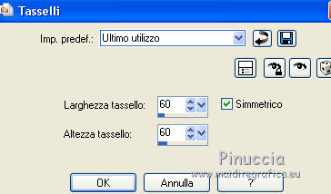 qui puoi trovare qualche risposta ai tuoi dubbi. Se l'argomento che ti interessa non è presente, ti prego di segnalarmelo. Questo tutorial è stato tradotto con Corel X e CorelX2, ma può essere realizzato anche con le altre versioni di PSP. Dalla versione X4, il comando Immagine>Rifletti è stato sostituito con Immagine>Capovolgi in orizzontale, e il comando Immagine>Capovolgi con Immagine>Capovolgi in verticale. Nelle versioni X5 e X6, le funzioni sono state migliorate rendendo disponibile il menu Oggetti. Con la nuova versione X7, sono tornati Rifletti>Capovolgi, ma con nuove varianti. Vedi la scheda sull'argomento qui traduzione in francese/traduction en français qui/iciVersioni/Versions qui Occorrente: Materiale qui Per la maschera grazie Animabelle Filtri: se hai problemi con i filtri, consulta la mia sezione filtri qui Filters Unlimited 2.0 qui &<Bkg Designer sf10I> - Circus Maximus (à importer dans Unlimited) qui Penta.com - Jeans qui Flaming Pear - Flexify 2 qui Simple - Pizza Slice Mirror qui I filtri Simple e Penta.com si possono usare da soli o importati in Filters Unlimited (come fare vedi qui) Se un filtro fornito appare con questa icona ![]() non esitare a cambiare modalità di miscelatura e opacità secondo i colori utilizzati. Metti il pennello nella cartella Pennelli. Attenzione, il pennello è composto da due files che non devono essere separati. Vedi gli appunti sui pennelli qui Metti la trama nella cartella Trame. Metti la selezione nella cartella Selezioni. Apri la maschera in PSP e minimizzala con il resto del materiale. Imposta il colore di primo piano con #556b9b, e il colore di sfondo con il colore bianco #ffffff. ![]() 1. Apri una nuova immagine trasparente 900 x 600 pixels. 2. Selezione>Seleziona tutto. Apri l'immagine "image Dunya" e vai a Modifica>Copia. Torna al tuo lavoro e vai a Modifica>Incolla nella selezione. Selezione>Deseleziona. 3. Effetti>Effetti tecniche di disegno>Pennellate. ![]() 4. Effetti>Plugins>Filters Unlimited 2.0 - &<Bkg Designer sf10I> - Circus Maximus. ![]() Regola>Messa a fuoco>Metti a fuoco. 5. Livelli>Duplica. Effetti>Effetti di distorsione>Tasselli. ![]() 6. Effetti>Plugins>Penta.com - Jeans ![]() 7. Abbassa l'opacità di questo livello al 70%. Livelli>Unisci>Unisci giù. 8. Effetti>Plugins>Filters Unlimited 2.0 - Simple - Pizza Slice Mirror. ![]() 9. Livelli>Duplica. Immagine>Rifletti. Abbassa l'opacità di questo livello al 50%. ![]() Livelli>Unisci>Unisci giù. 10. Selezione>Seleziona tutto. Livelli>Nuovo livello raster. 11. Modifica>Incolla nella selezione (l'immagine image Dunya è sempre in memoria). Selezione>Deseleziona. 12. Effetti>Plugins>Flaming Pear - Flexify 2. ![]() 13. Immagine>Ridimensiona, al 55%, tutti i livelli non selezionato. ![]() 14. Effetti>Effetti di immagine>Scostamento. ![]() 15. Livelli>Duplica. Immagine>Capovolgi. Livelli>Unisci>Unisci giù. 16. Effetti>Effetti 3D>Sfalsa ombra, colore nero. ![]() 17. Livelli>Nuovo livello raster. Riempi con il colore di sfondo #ffffff.18. Livelli>Nuovo livello maschera>Da immagine. Apri il menu sotto la finestra di origine e vedrai la lista dei files aperti. Seleziona la maschera 142_animabelle_masque. ![]() Livelli>Unisci>Unisci gruppo. 19. Abbassa l'opacità di questo livello al 24%. ![]() 20. Apri il tube del paesaggio "heidis" e vai a Modifica>Copia. Torna al tuo lavoro e vai a Modifica>Incolla come nuovo livello. Regola>Messa a fuoco>Metti a fuoco. 21. Selezione>Carica/Salva selezione>Carica selezione da disco. Cerca e carica la selezione sel inthisworld. ![]() Selezione>Innalza selezione a livello. Abbassa l'opacità del livello sottostante al 50%. Rimani posizionato sul livello superiore. ![]() 22. Selezione>Modifica>Seleziona bordature selezione. ![]() 23. Selezione>Innalza selezione a livello. Riempi la selezione con il colore di sfondo #ffffffSelezione>Deseleziona. 24. Effetti>Effetti 3D>Sfalsa ombra, colore nero. ![]() 25. Livelli>Nuovo livello raster. Attiva lo strumento Pennello ![]() cerca e seleziona il pennello BrushBirds ![]() Applica il pennello a tuo piacimento cliccando con il tasto destro del mouse, per usare il colore bianco di sfondo. 26. Immagine>Aggiungi bordatura, simmetriche non selezionato, colore bianco di sfondo #ffffff. ![]() Immagine>Aggiungi bordatura, 40 pixels, simmetriche, colore di primo piano #556b9b. 27. Attiva lo strumento Bacchetta magica ![]() e clicca nel bordo di 40 pixels per selezionarlo. 28. Livelli>Nuovo livello raster. Apri la paletta del colore di sfondo e seleziona Trama. Cerca e seleziona la trama Texture In this world, con i seguenti settaggi ![]() Riempi la selezione con il colore tramato.Abbassa l'opacità di questo livello al 61%. Selezione>Deseleziona. 30. Immagine>Aggiungi bordatura, 1 pixel, simmetriche, colore bianco di sfondo #ffffff. Immagine>Ridimensiona, 900 pixels di larghezza, tutti i livelli selezionato. 31. Apri Irina tube e vai a Modifica>Copia. Torna al tuo lavoro e vai a Modifica>Incolla come nuovo livello. Immagine>Rifletti. Immagine>Ridimensiona, all'85%, tutti i livelli non selezionato. ![]() 32. Effetti>Effetti di immagine>Scostamento. ![]() Effetti>Effetti 3D>Sfalsa ombra, colore nero. ![]() Regola>Messa a fuoco>Metti a fuoco. 34. Apri il tube Dunya Deco e vai a Modifica>Copia. Torna al tuo lavoro e vai a Modifica>Incolla come nuovo livello. Livelli>Disponi>Sposta giù. 35. Immagine>Aggiungi bordatura, 1 pixel, simmetriche, colore bianco di sfondo #ffffff. 36. Apri il file di testo e vai a Modifica>Copia. Torna al tuo lavoro e vai a Modifica>Incolla come nuovo livello. io ho ridimensionato il testo al 95% Sposta il testo in basso a destra.37. Effetti>Effetti 3D>Sfalsa ombra, colore nero. ![]() 38. Livelli>Unisci>Unisci tutto. Firma il tuo lavoro e salva in formato jpg. ![]() Puoi scrivermi se hai problemi o dubbi, o trovi un link che non funziona, o soltanto per un saluto. 28 Maggio 2018 |