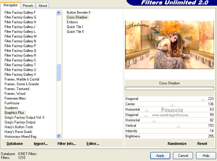 31. Effetti>Plugins>Filters Unlimited 2.0 - Graphics Plus - Cross Shadow.