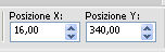 e imposta Posizione X: 16,00 e Posizione Y: 340,00.