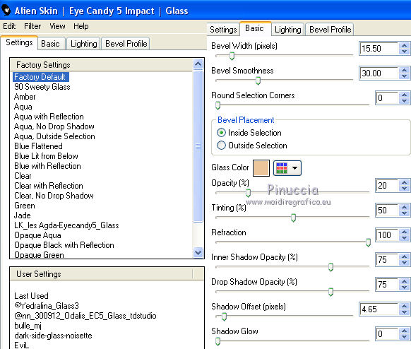 15. Effetti>Plugins>Alien Skin Eye Candy 5 Impact - Glass, con i settaggi standard,