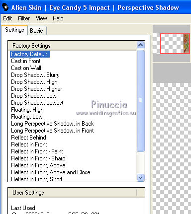 14. Effetti>Plugins>Alien Skin Eye Candy 5 Impact - Perspective Shadow, con i settaggi standard.