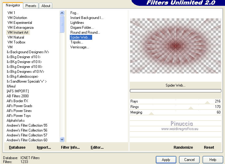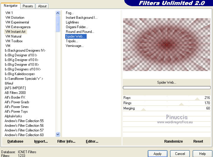 6. Effetti>Plugins>Filters Unlimited 2.0 - VM Instant Art - Spider Web