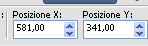 Imposta Posizione X: 581,00 e Posizione Y: 341,00.