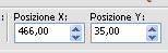 Imposta Posizione X: 466,00 e Posizione Y: 35,00.