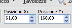 e Imposta Posizione X: 12,00 e Posizione Y: 168,00
