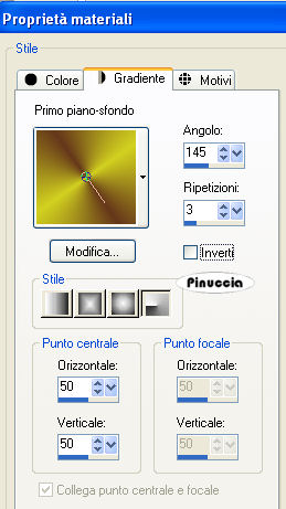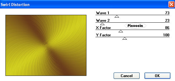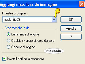 qui puoi trovare qualche risposta ai tuoi dubbi. Se l'argomento che ti interessa non è presente, ti prego di segnalarmelo. Questo tutorial è stato creato con la versione X3, ma può essere eseguito anche con le altre versioni di PSP. Per tradurlo ho usato Corel X. Occorrente: Materiale qui Filtri: Video Rave - Swirl distorsion qui FM Tile Tools - Blend Emboss qui Xero - Improver qui Eye Candy 4000 - Glass qui Metti la maschera 20-20 nella cartella Maschere. Apri la seconda maschera e minimizzala in PSP insieme al resto del materiale. Imposta il colore di primo piano con #6437ab, e il colore di sfondo con #d2d11f. Passa il colore di primo piano a Gradiente, con i seguenti settaggi. ![]() Apri una nuova immagine trasparente 800 x 600 pixels, e riempila con il gradiente.Regola>Sfocatura>Sfocatura gaussiana - raggio 20. ![]() Effetti>Plugins>Video Rave - Swirl Distortion. ![]() Ripeti ancora una volta l'Effetto Swirl Distortion. Livelli>Nuovo livello raster. Selezione>Seleziona tutto. Apri il tube calguismaya7310 e vai a Modifica>Copia. Torna al tuo lavoro e vai a Modifica>Incolla nella selezione. Selezione>Deseleziona. Effetti>Effetti di immagine>Motivo unico, con i settaggi standard. ![]() Regola>Sfocatura>Sfocatura gaussiana - raggio 20. Abbassa l'opacità di questo livello all'80%. Livelli>Unisci>Unisci giù. Livelli>Nuovo livello raster. Riempi con il colore di primo piano.Livelli>Nuovo livello maschera>Da immagine. Apri il menu sotto la finestra di origine e vedrai la lista dei files aperti. Tra questi la maschera. Seleziona la maschera maskmilie09 con i seguenti settaggi: ![]() Livelli>Elimina, e rispondi sì alla domanda Unire la maschera nel livello corrente. ![]() Livelli>Unisci>Unisci gruppo. Effetti>Effetti 3D>Sfalsa ombra, con il colore #ffff40. ![]() Attiva lo strumento Selezione , rettangolo,e seleziona l'interno della maschera. ![]() Livelli>Nuovo livello raster. Riempi con il colore di sfondo (tasto destro del mouse).Livelli>Disponi>Sposta giù. Mantieni selezionato. Livelli>Nuovo livello raster. Apri il tube Calguismisted7310. Immagine>Ridimensiona, al 52%. Modifica>Copia. Torna al tuo lavoro e vai a Modifica>Incolla come nuovo livello. Posiziona nell'area selezionata, come nell'esempio.![]() Selezione>Inverti. Premi sulla tastiera il tasto CANC. Selezione>Deseleziona. Livelli>Duplica. Immagine>Rifletti. Abbassa l'opacità di questo livello al 25%. Livelli>Unisci>Unisci giù. Effetti>Plugins>FM Tile Tool - Blend Emboss, con i settaggi standard. ![]() Apri il tube Calguiseaster7310. Livelli>Carica/Salva maschera>Carica maschera da disco. Cerca e carica la maschera 20-20. ![]() Livelli>Elimina e rispondi sì alla domanda Unire la maschera nel livello corrente. Livelli>Unisci>Unisci gruppo. Immagine>Rifletti. Modifica>Copia. Torna al tuo lavoro e vai a Modifica>Incolla come nuovo livello. Sposta anche questo tube all'interno della maschera, accanto ai fiori.Chiudi il livello di sfondo e il livello della maschera. Livelli>Unisci>Unisci visibile. Effetti>Plugins>FM Tile Tools - Blend Emboss, con i settaggi standard. ![]() Riapri i livelli chiusi. Selezione>Seleziona tutto. Livelli>Nuovo livello raster. Riempi con il colore di primo piano.Selezione>Modifica>Contrai - 2 pixels. Premi sulla tastiera il tasto CANC. Livelli>Nuovo livello raster. Riempi con il colore #ffff40.Selezione>Modifica>Contrai - 4 pixels. Premi sulla tastiera il tasto CANC. Livelli>Nuovo livello raster. riempi con il colore di primo piano.Selezione>Modifica>Contrai - 2 pixels. Premi sulla tastiera il tasto CANC. Livelli>Unisci>Unisci visibile. Apri il tube MR-oeufs_chocolat. Immagine>Ridimensiona, all'83%. Modifica>Copia. Torna al tuo lavoro e vai a Modifica>Incolla come nuovo livello. Posiziona il tube come nel mio esempio.![]() Effetti>Effetti 3D>Sfalsa ombra, con il colore nero. ![]() Attiva nuovamente il tube Calguismaya7310. Immagine>Ridimensiona, all'80%. Modifica>Copia. Torna al tuo lavoro e vai a Modifica>Incolla come nuovo livello. Posiziona il tube a destra.Effetti>Effetti 3D>Sfalsa ombra, con i settaggi precedenti. Effetti>Plugins>Xero - Improver, con i settaggi standard. ![]() Chiudi il colore di sfondo e imposta il colore scuro come colore di primo piano. Attiva lo strumento Testo e seleziona il font Firestarter con i seguenti settaggi.(dovrai regolare la dimensione a seconda del testo e della versione di PSP che stai usando). ![]() Scrivi il testo. Selezione>Innalza selezione a livello. Effetti>Plugins>Eye Candy 4000 - Glass: ![]() Effetti>Effetti 3D>Sfalsa ombra, con il colore #b67763. ![]() Apri il tube arrgt16 e vai a Modifica>Copia. Torna al tuo lavoro e vai a Modifica>Incolla come nuovo livello. Spostalo nell'angolo in alto a sinistra.Nella paletta dei livelli sposta questo livello sopra il livello Uniti. Aggiungi il tuo nome e/o il tuo watermark. Livelli>Unisci>Unisci tutto e salva in formato jpg. ![]() Se hai problemi o dubbi, o trovi un link non funzionante, o anche soltanto per un saluto, scrivimi. 9 Gennaio 2010 |