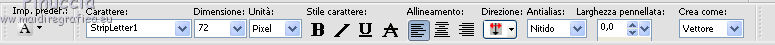 Attiva lo strumento Testo, e seleziona il font StripLetter1 con i seguenti settaggi.