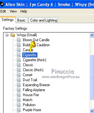 Settings: Small, Cigarette; e sotto Basic sperimenta il settaggio che preferisci.