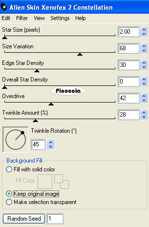 Ripeti l'Effetto Constellation con gli stessi settaggi, ma cliccando una volta su Random Seed.