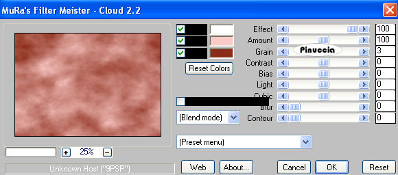 Premere successivamente il tasto Reset serve per cambiare casualmente (ragione per la quale il tuo risultato non potrà essere uguale al mio esempio, l'aspetto delle nuvole.