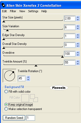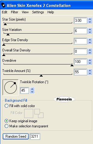 Ripeti l'Effetto Constellation cambiando Star Size con 3,00 e cliccando su Random Seed.