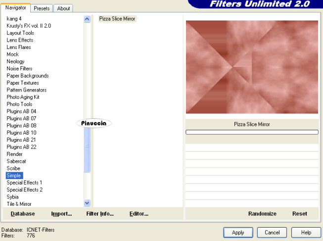 Effetti>Plugins>Simple - Pizza Slice Mirror.