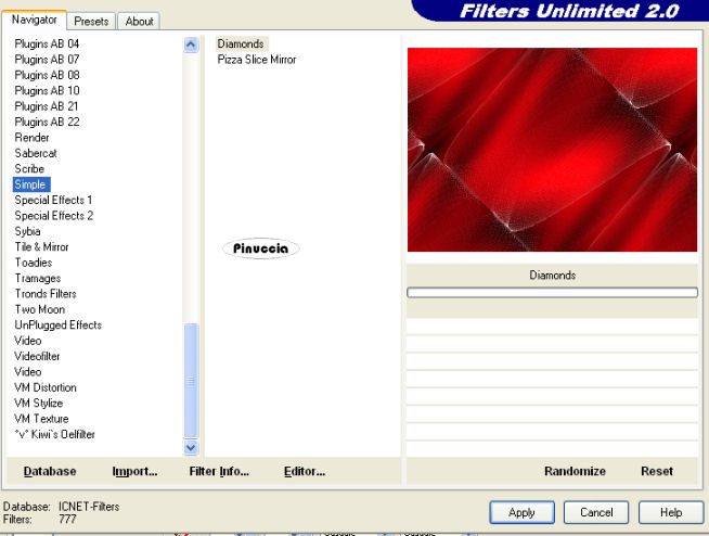 questo filtro funziona da solo, ma si può anche importare in Filters Unlimited, in questo modo si può vedere l'anteprima del risultato dell'effetto
