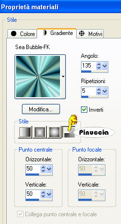 Passa il colore di primo piano a Gradiente e seleziona il gradiente Sea Bubble-FK, con i seguenti settaggi: