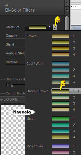 a destra, apri il menu delle impostazioni e seleziona Green/Brown 1:
