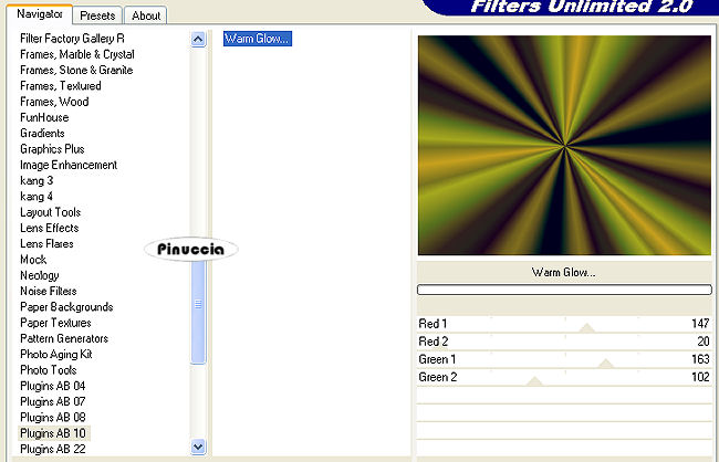 Effetti>Plugins>Filters Unlimited 2.0 - Plugins AB10 - Warm Glow:
