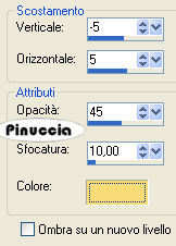 Effetti>Effetti 3D>sfalsa ombra, con i seguenti settaggi, con il colore di primo piano.
