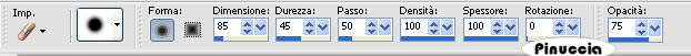 Attiva lo strumento Gomma con i seguenti settaggi.