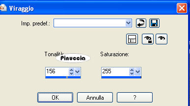 Regola>Tonalità e saturazione>Viraggio, con i settaggi precedenti.