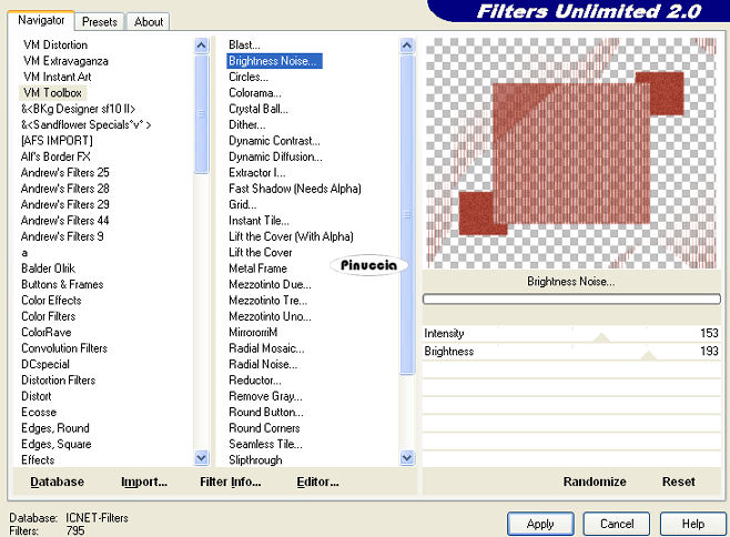 Effetti>Plugins>Filters Unlimited - VM Toolbox - Brightness Noise.