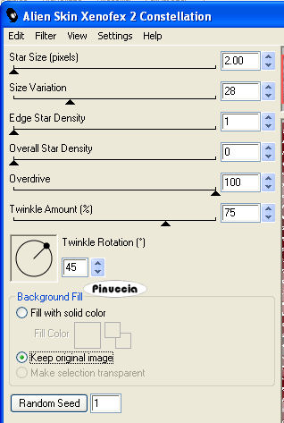 Ripeti l'Effetto Constellation con gli stessi settaggi, ma cliccando una volta su Random Seed.