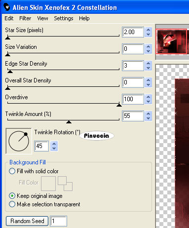 Ripeti l'Effetto Constellation, con gli stessi settaggi, ma cliccando una volta su Random Seed.