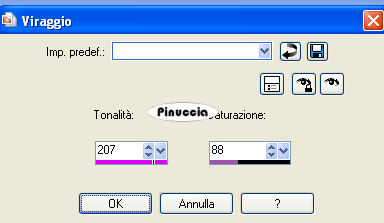 Regola>Tonalità e Saturazione>Viraggio, con i valori corrispondenti al colore di primo piano.