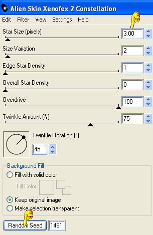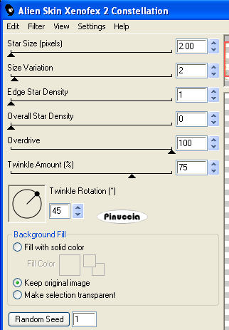 Ripeti l'Effetto Constellation, cambiando Star Size con 3.00 e premendo una volta Random Seed.