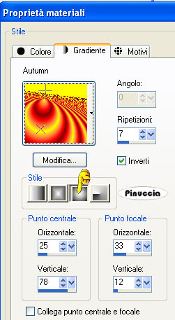 Passa il colore di primo piano a Gradiente, e seleziona il gradiente Autumn, con i seguenti settaggi: