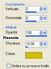 Effetti>Effetti 3D>Sfalsa ombra, con i seguenti settaggi, con il colore di primo piano.