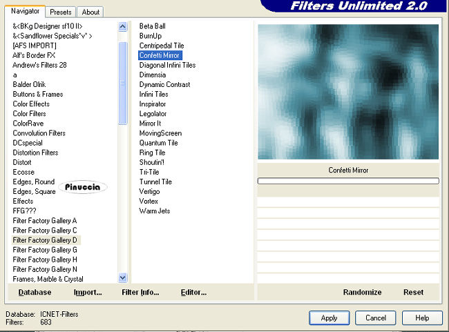Effetti>Plugins>Filters Unlimited - Filter Factory Gallery D - Confetti Mirror: